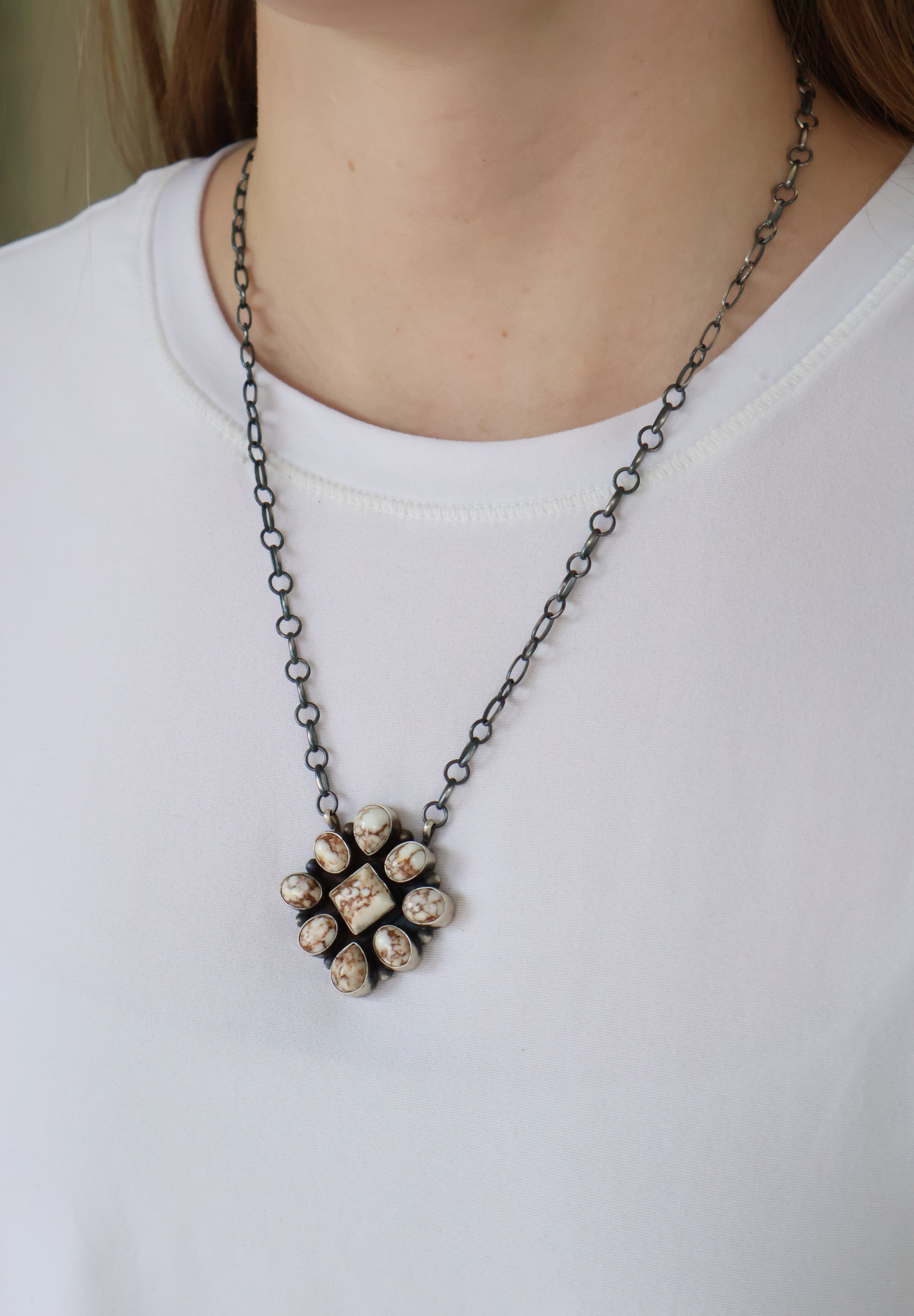 Wild Horse stone, also known as Crazy Horse Stone or Appaloosa Stone, is a captivating metamorphic rock that forms when magnesium-rich rock interacts with a carbonate-rich solution. Characterized by its white magnesite base and distinctive brown mottling, it often contains hematite inclusions. It was first discovered in Globe, Arizona. Read More