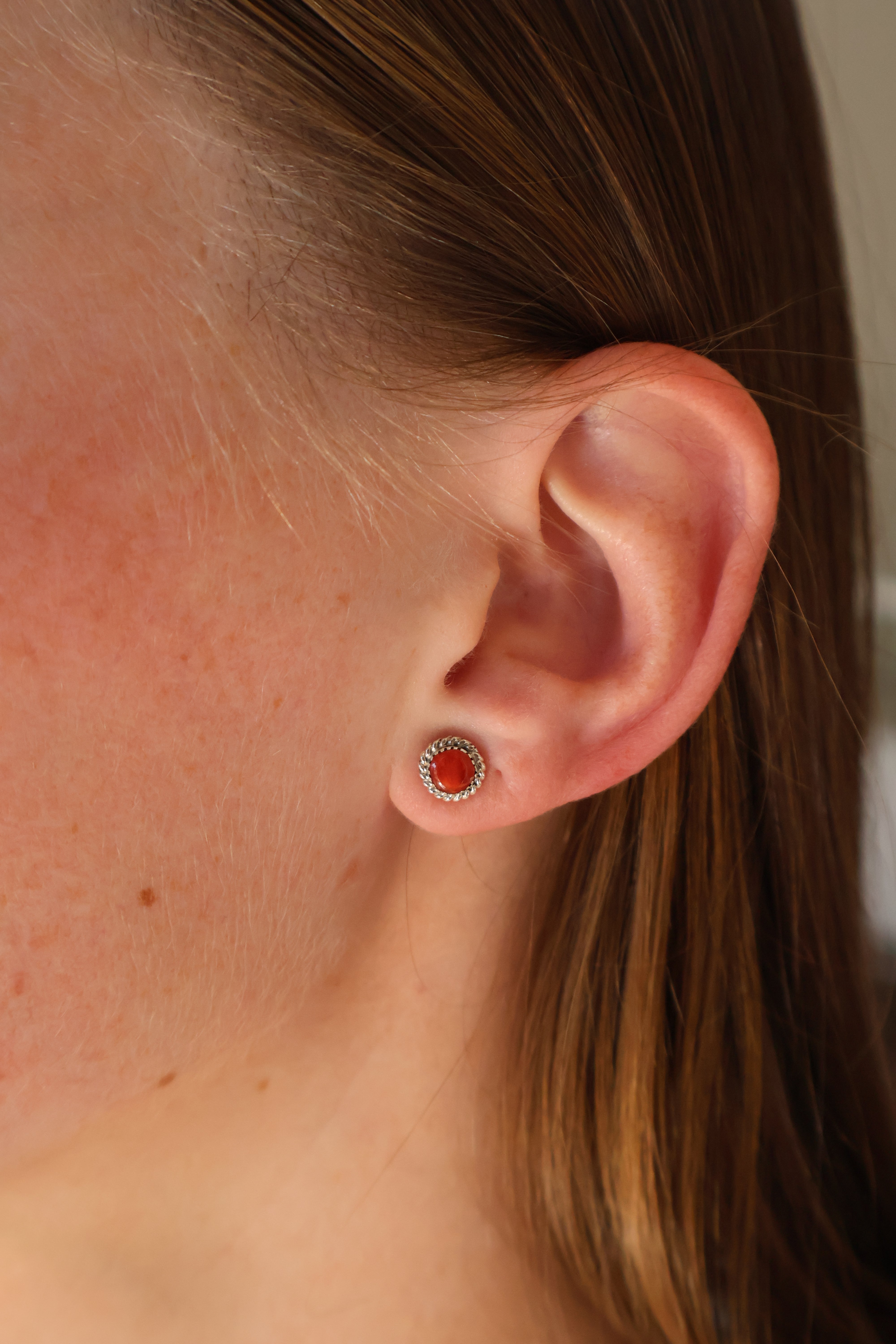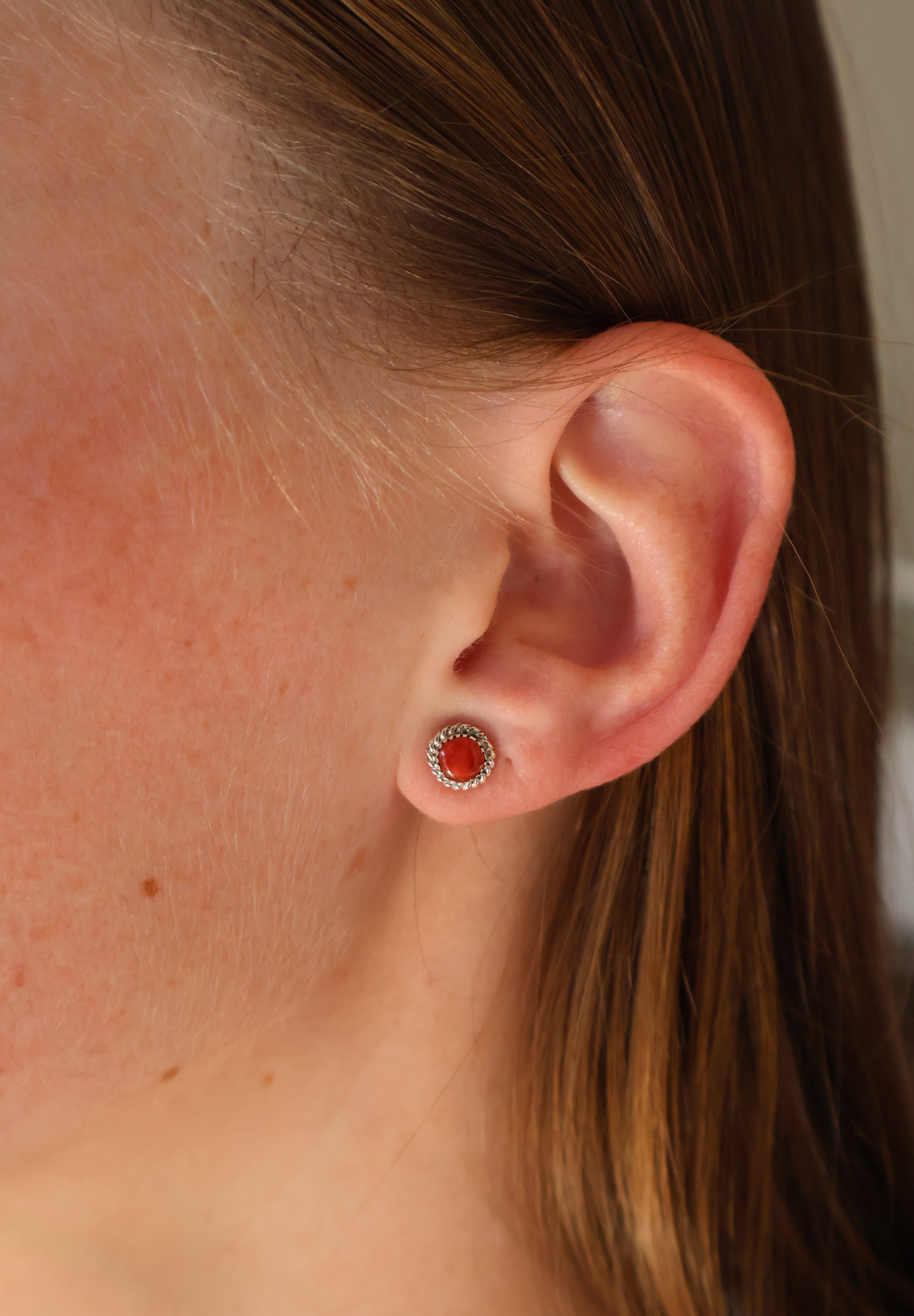 Double Twist Round Studs - Red Spiny