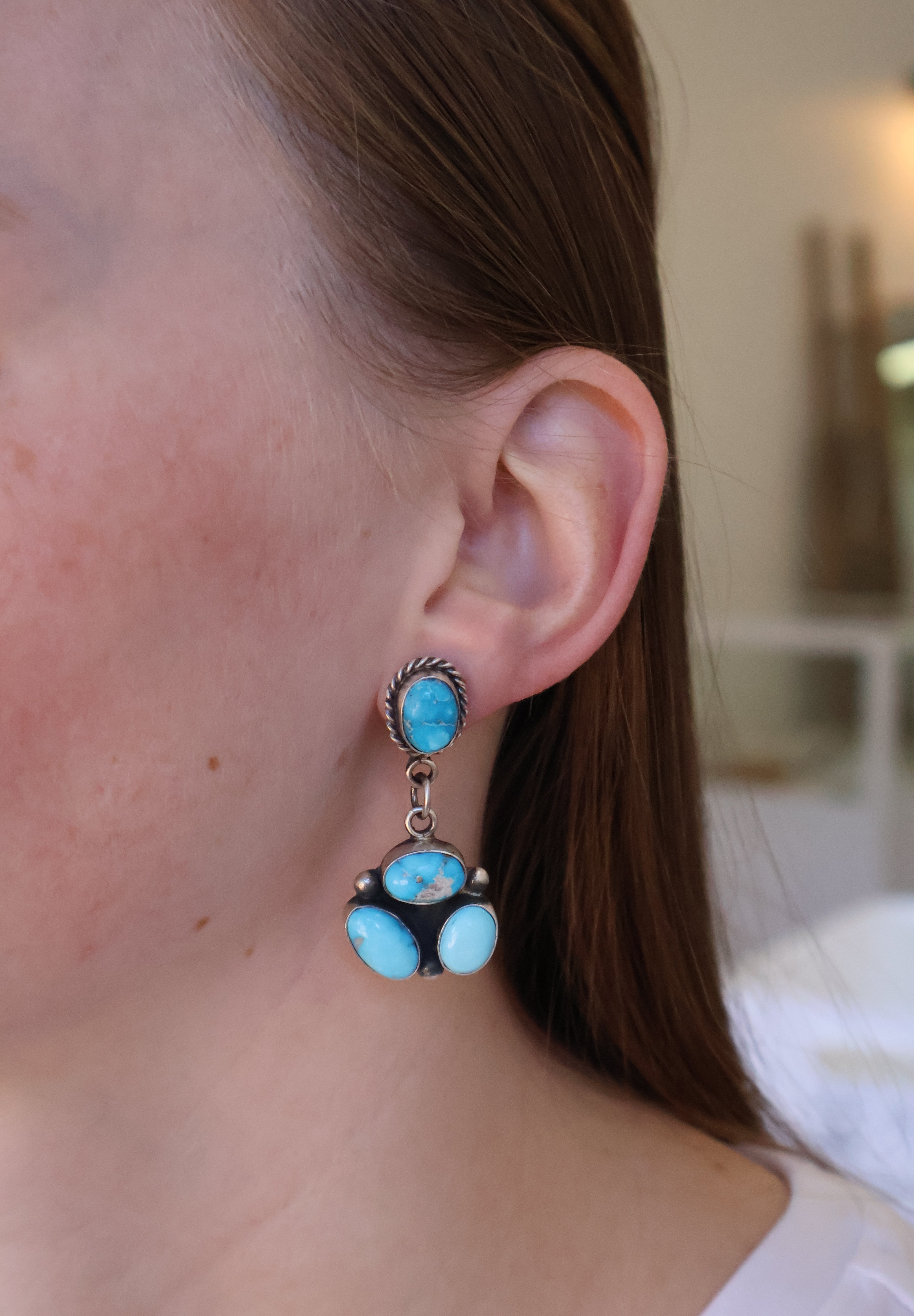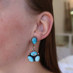 Sonoran turquoise, mined from the Campitos Mountain near Cananea, Sonora, Mexico. This region produces several distinctive types, including Sonoran Gold, known for its vibrant colors like aqua blue, lime, and two-tone blue and green with a golden-brown matrix; Sonoran Rose, a natural bright blue turquoise; and Sonoran Blue, valued for its hardness, shiny pyrite flakes, and black oxide veins.