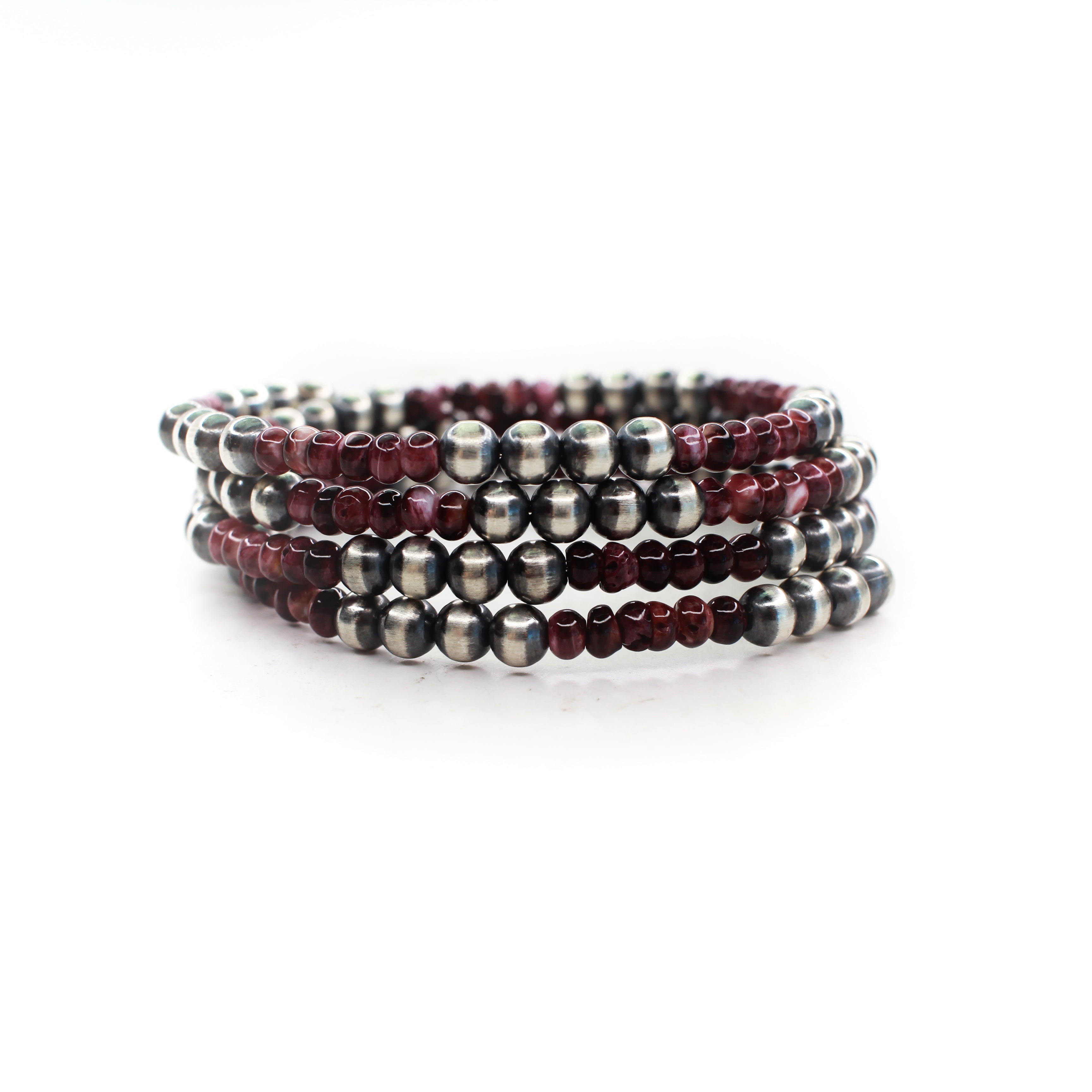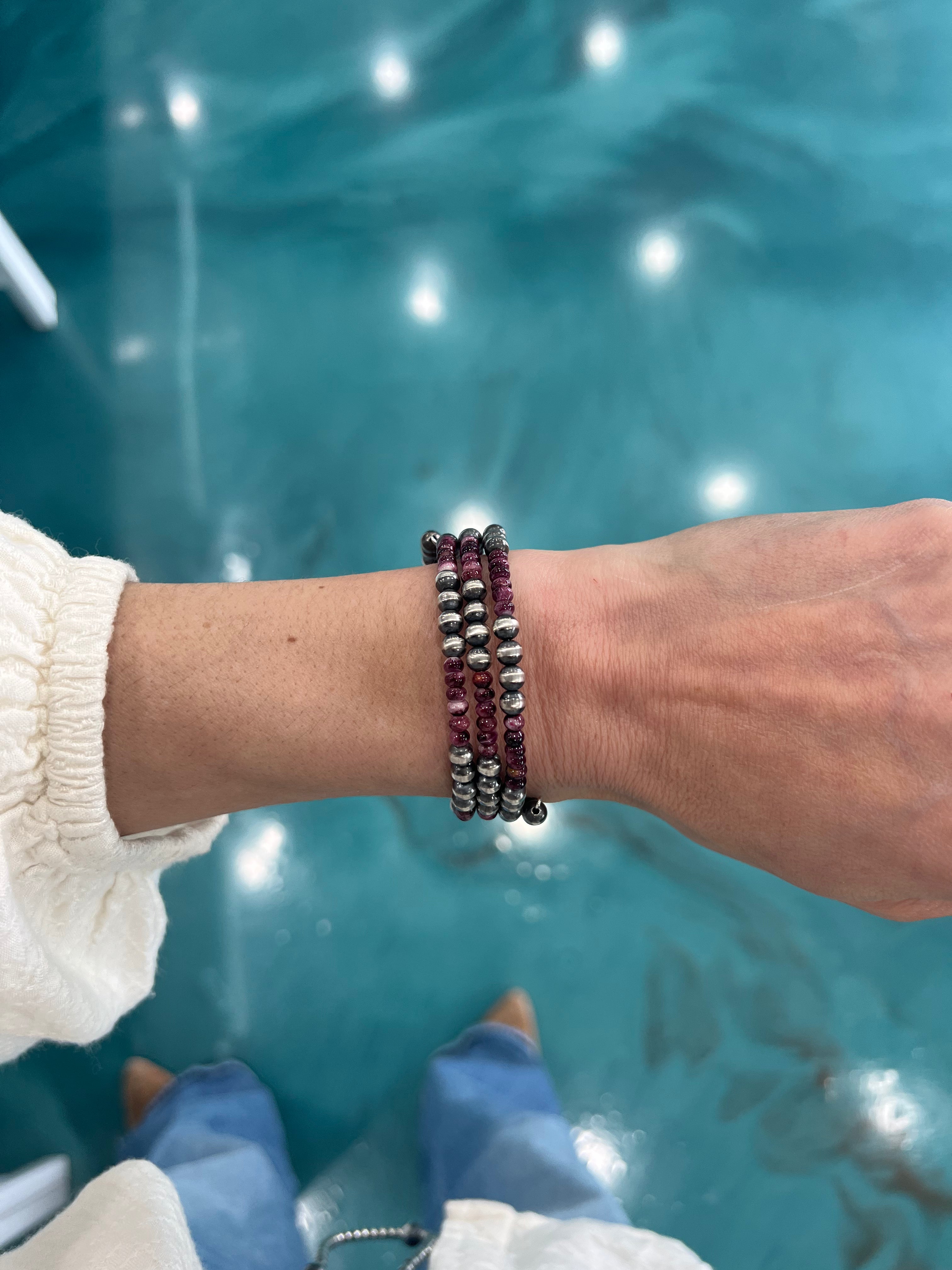 5mm Navajo Pearl Memory Wire Bracelet - Purple