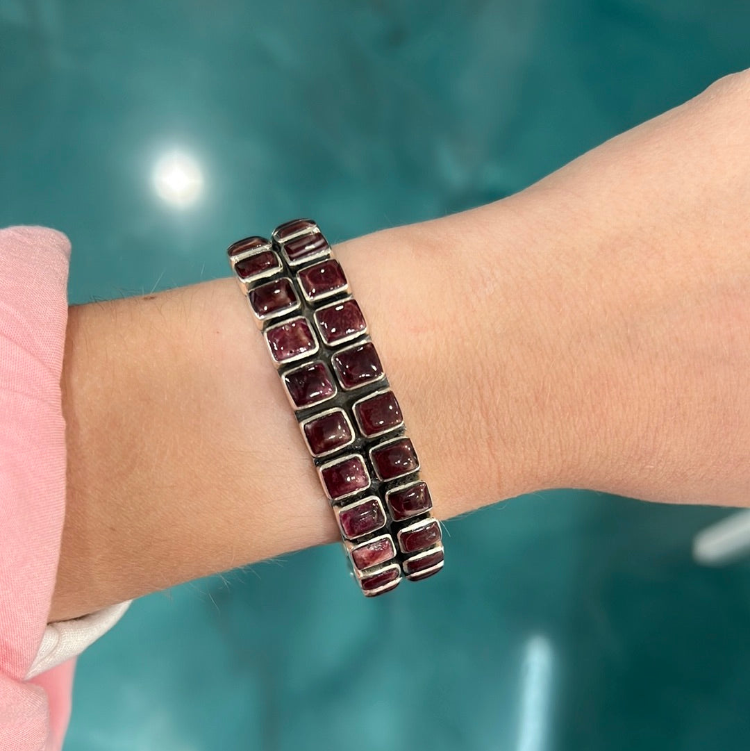 Spiny Oyster is a vibrant shell material commonly found in orange, red, and purple hues, with rare yellow variations. The colors are influenced by the mollusks' diet and the water's depth and temperature. It can be distinguished from coral by the white variations in its shell. Predominantly sourced from the Sea of Cortez (Gulf of California), Spiny Oyster is used extensively in Native American jewelry. Read More