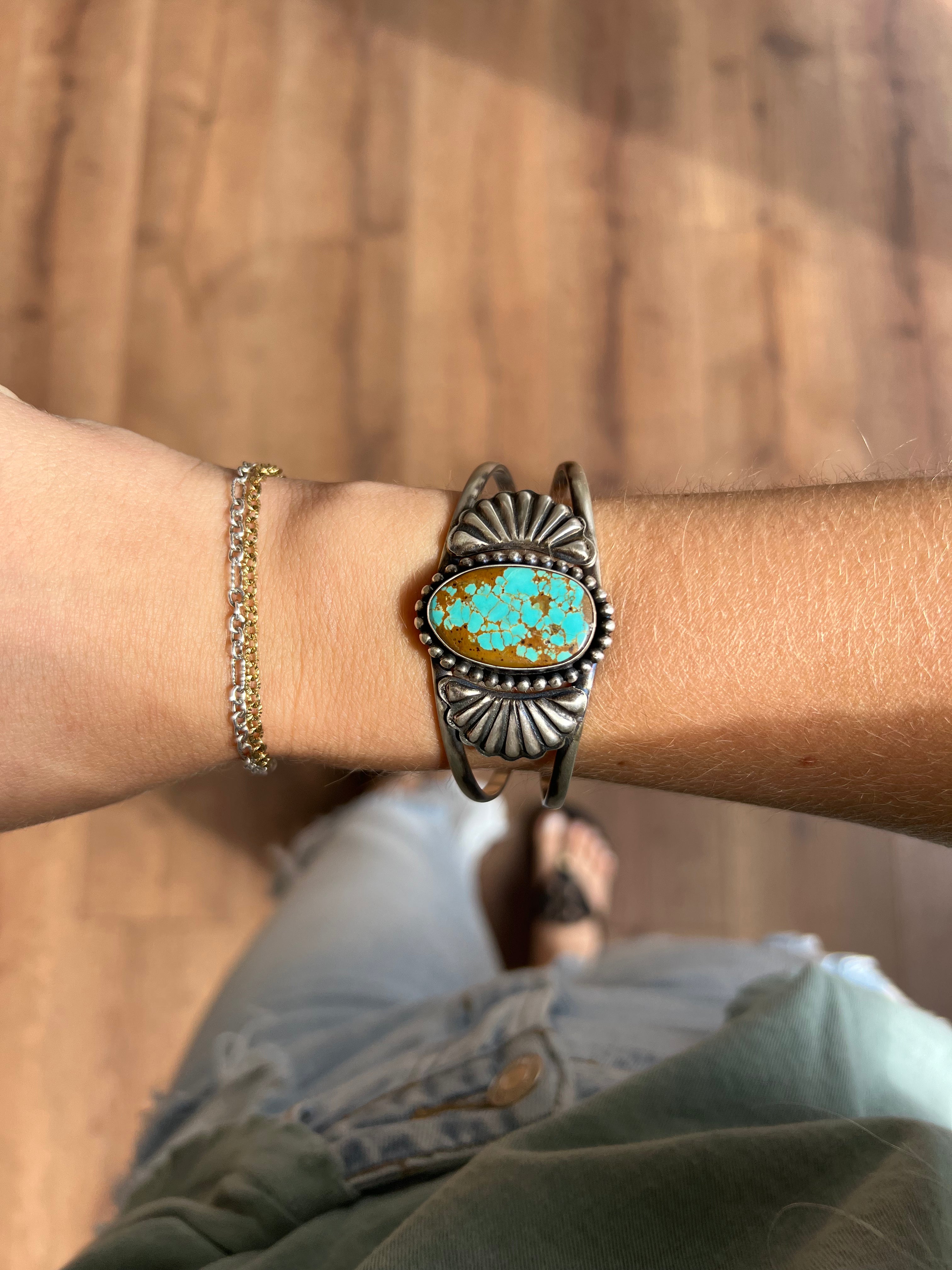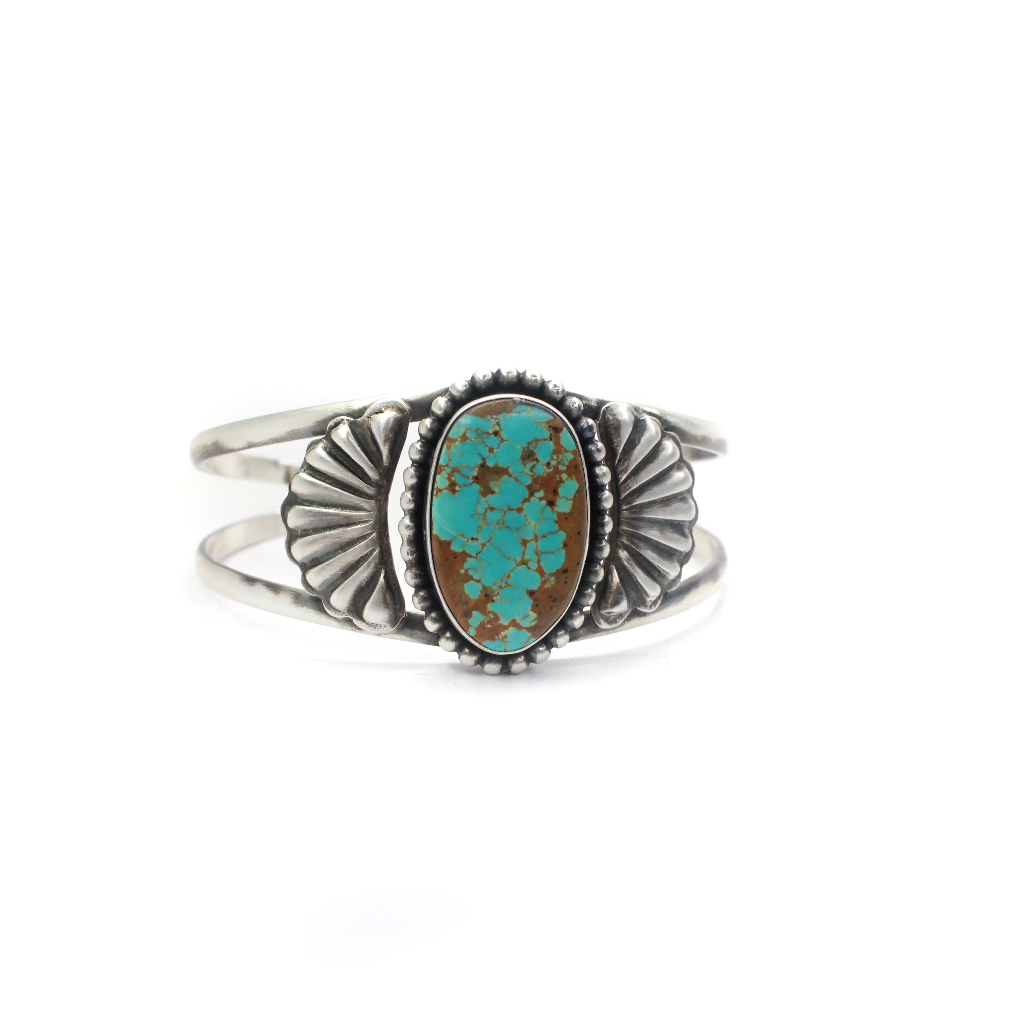 Throughout his nearly forty-year career, Paul has continually pushed the boundaries of traditional Navajo jewelry, experimenting with new techniques, textures, and finishes to enhance the beauty of his pieces. While his work is rooted in traditional and vintage-inspired Navajo styles, his contemporary designs are equally popular. His intricate saw work demonstrates the technical expertise and artistic vision that have come to define his jewelry. Paul Livingston's creations honor his heritage while standing out for their beauty and craftsmanship, making them highly prized among collectors and art enthusiasts alike.