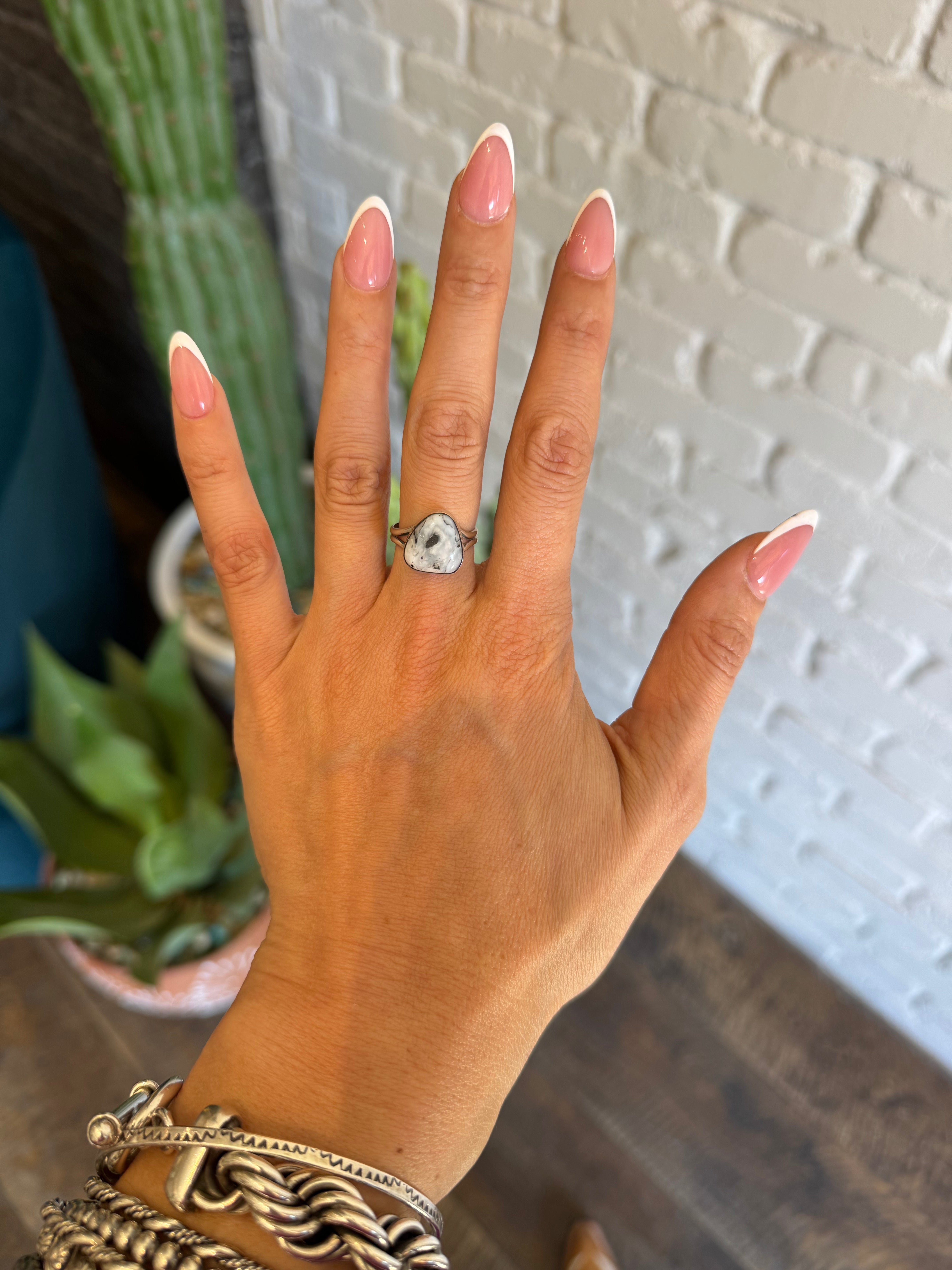 White Buffalo is in fact NOT turquoise. Although White Buffalo is often sold as turquoise, it's classification is actually magnesite and alumite. Its unique coloring comes from the presence of Calcite mineral. The only mine known to be home to White Buffalo is The Dry Creek Mine in Tonopah, NV. It was first discovered by the Otteson family in 1993. The name derives from the Native American belief that white buffaloes are pure and rare like the white buffalo stone. The white stone is surrounded by black and brown flint-like chert which creates beautiful patterns, and sometimes in rare pieces, a spider-web matrix. The stone appears in veins, is as hard as turquoise (Mohs hardness scale of 5.5 to 7.5) and cuts and polishes like turquoise.