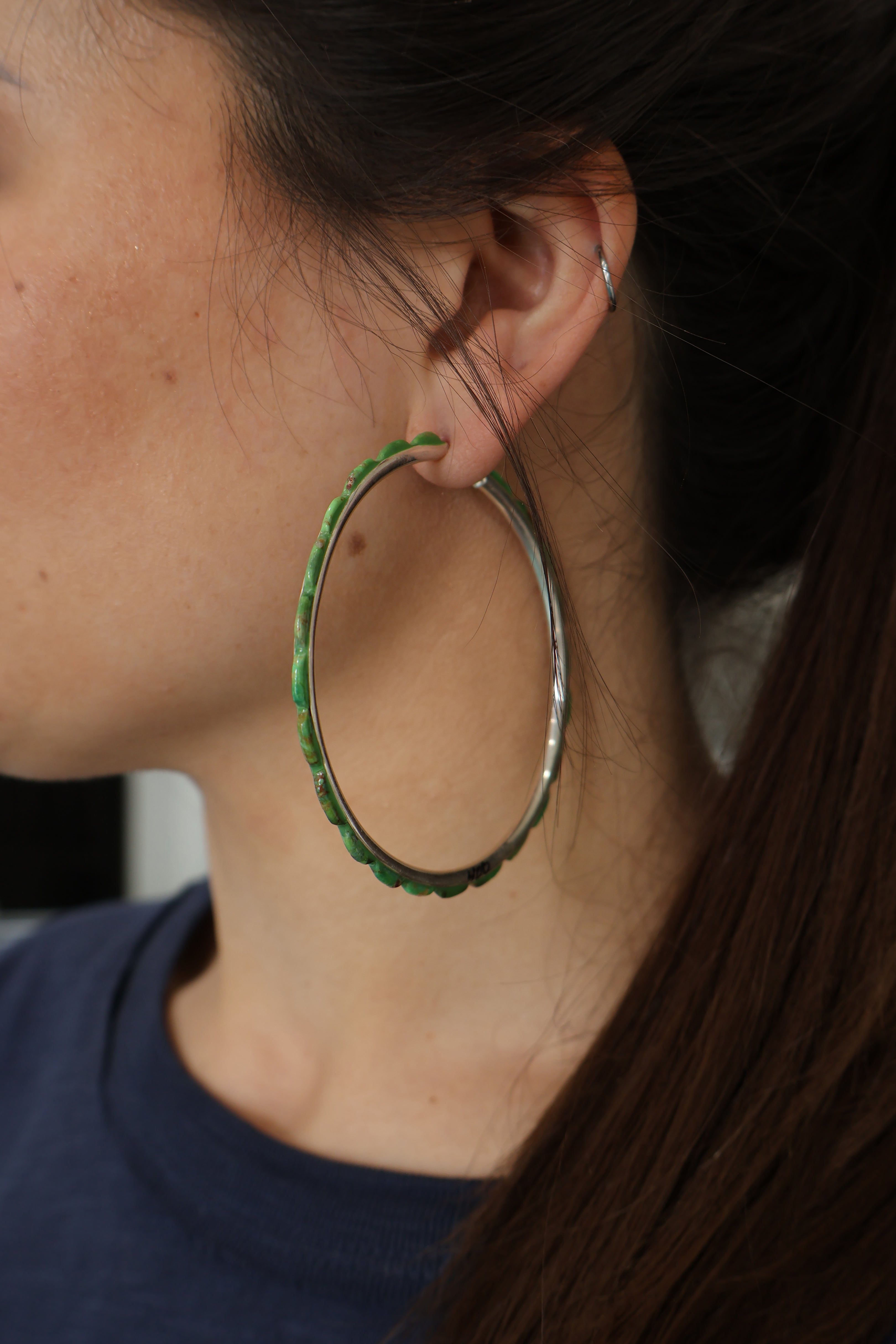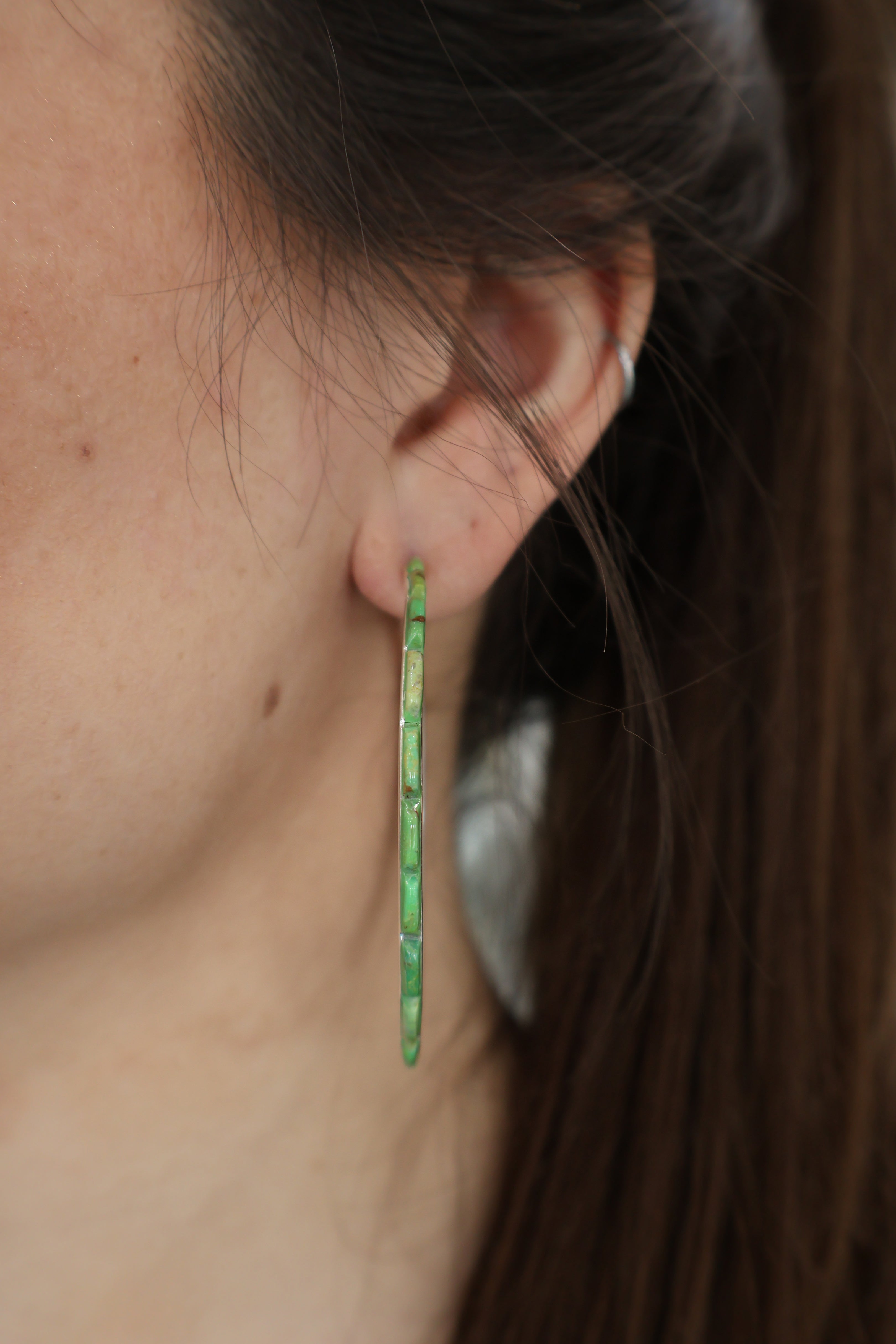 3" Green Turquoise Hoops