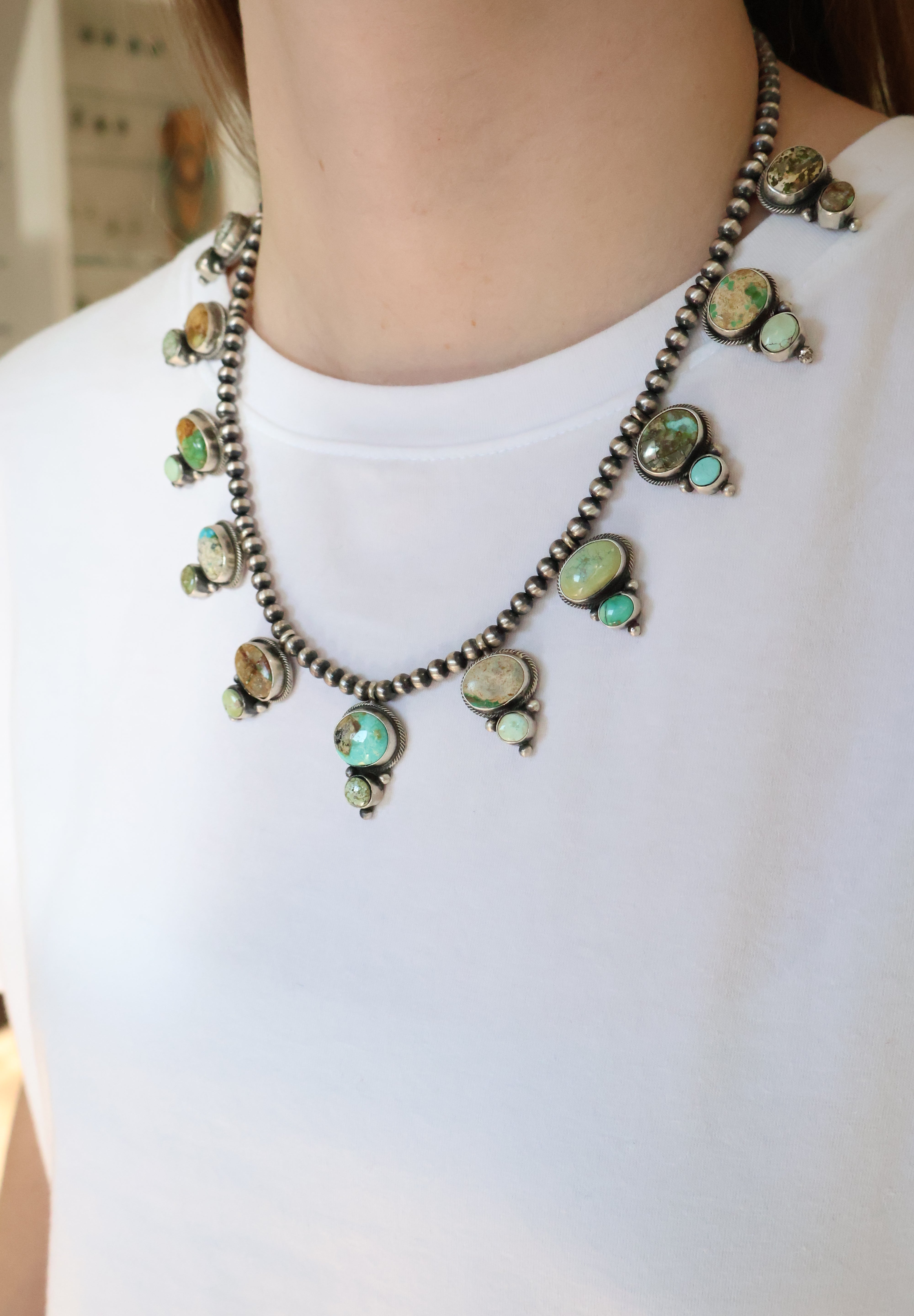 Royston Turquoise originates from the Royston mining district near Tonopah, Nevada, and has been mined since the early 1900s. This turquoise originally comprised four old claims located within the Royston range: Bunker Hill, Easter Blue, Oscar Wehrend, and Royal Blue. The Royston area is known for producing stunning turquoise in a range of colors, from deep sky blue to dark greens. Read More