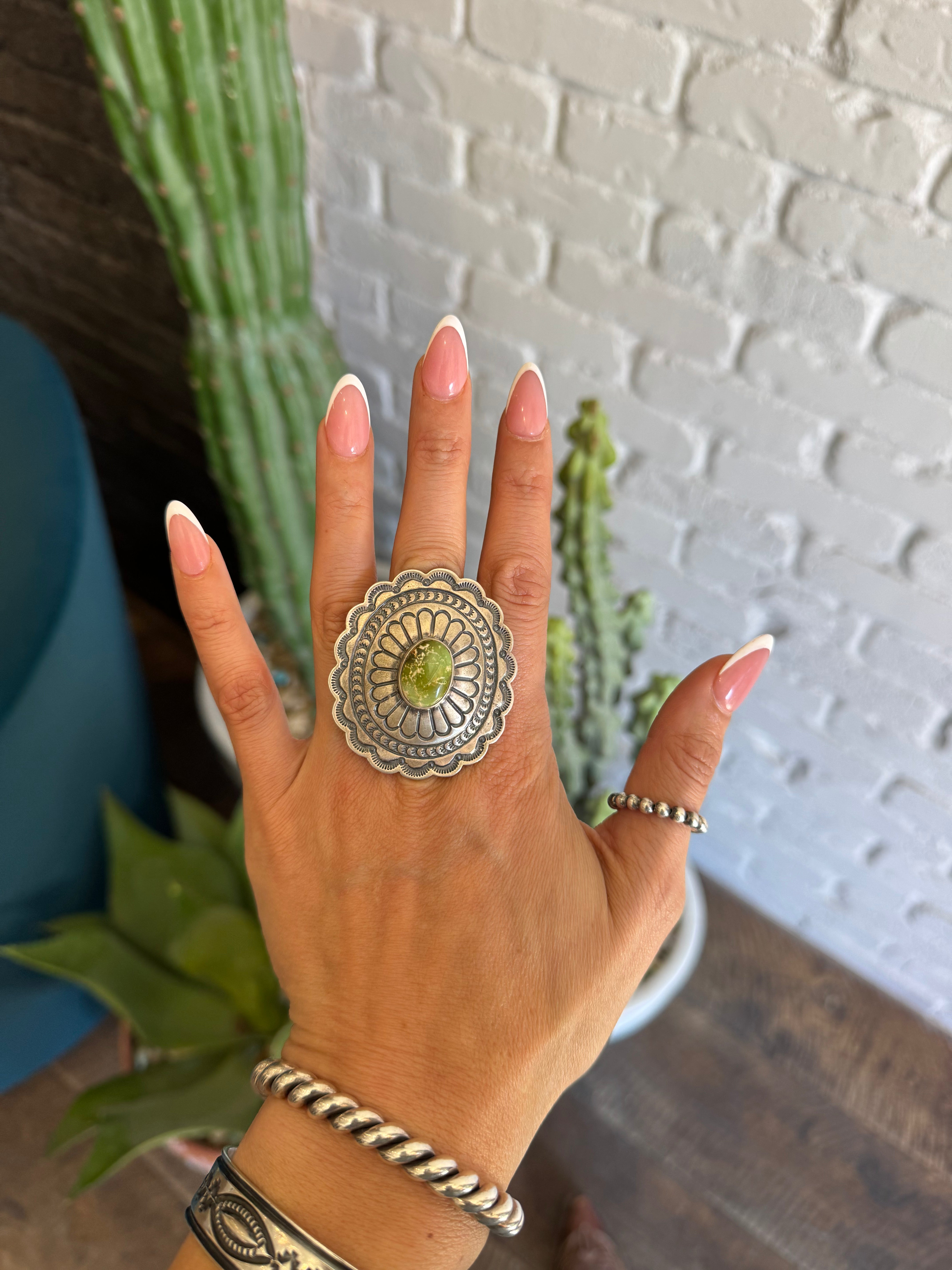 Sonoran turquoise, mined from the Campitos Mountain near Cananea, Sonora, Mexico. This region produces several distinctive types, including Sonoran Gold, known for its vibrant colors like aqua blue, lime, and two-tone blue and green with a golden-brown matrix; Sonoran Rose, a natural bright blue turquoise; and Sonoran Blue, valued for its hardness, shiny pyrite flakes, and black oxide veins.