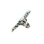 Ella Peter, a talented Navajo silversmith, was born on April 2, 1943, in the Tsa-ya-toh area of New Mexico on the Navajo reservation. From a young age, she learned the art of jewelry making and basket weaving from her father. With over 45 years of experience, Ella has honed her skills to become a master silversmith. She currently resides in Mentmore, New Mexico, where she continues to create beautiful pieces of jewelry.