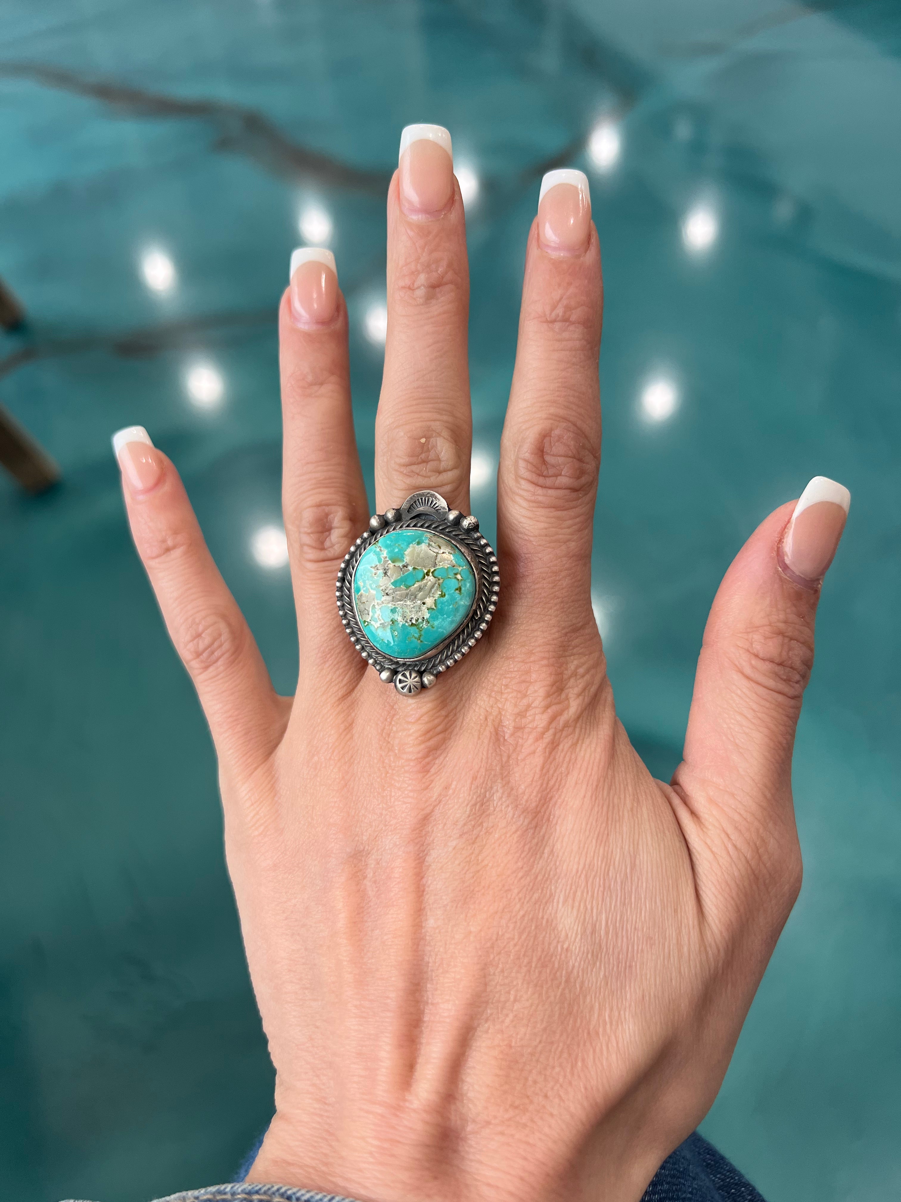 Sheila Becenti is a talented Navajo artist renowned for her outstanding craftsmanship, especially in her cluster work jewelry. With a keen eye for high-quality stones, she creates stunning statement pieces that beautifully reflect her cultural heritage and artistic vision. Her designs artfully blend traditional techniques with a modern twist, resulting in work that is highly coveted within the Native American art community. Sheila's dedication to her craft not only honors her roots but also pushes the boundaries of contemporary Native American jewelry.