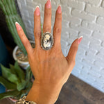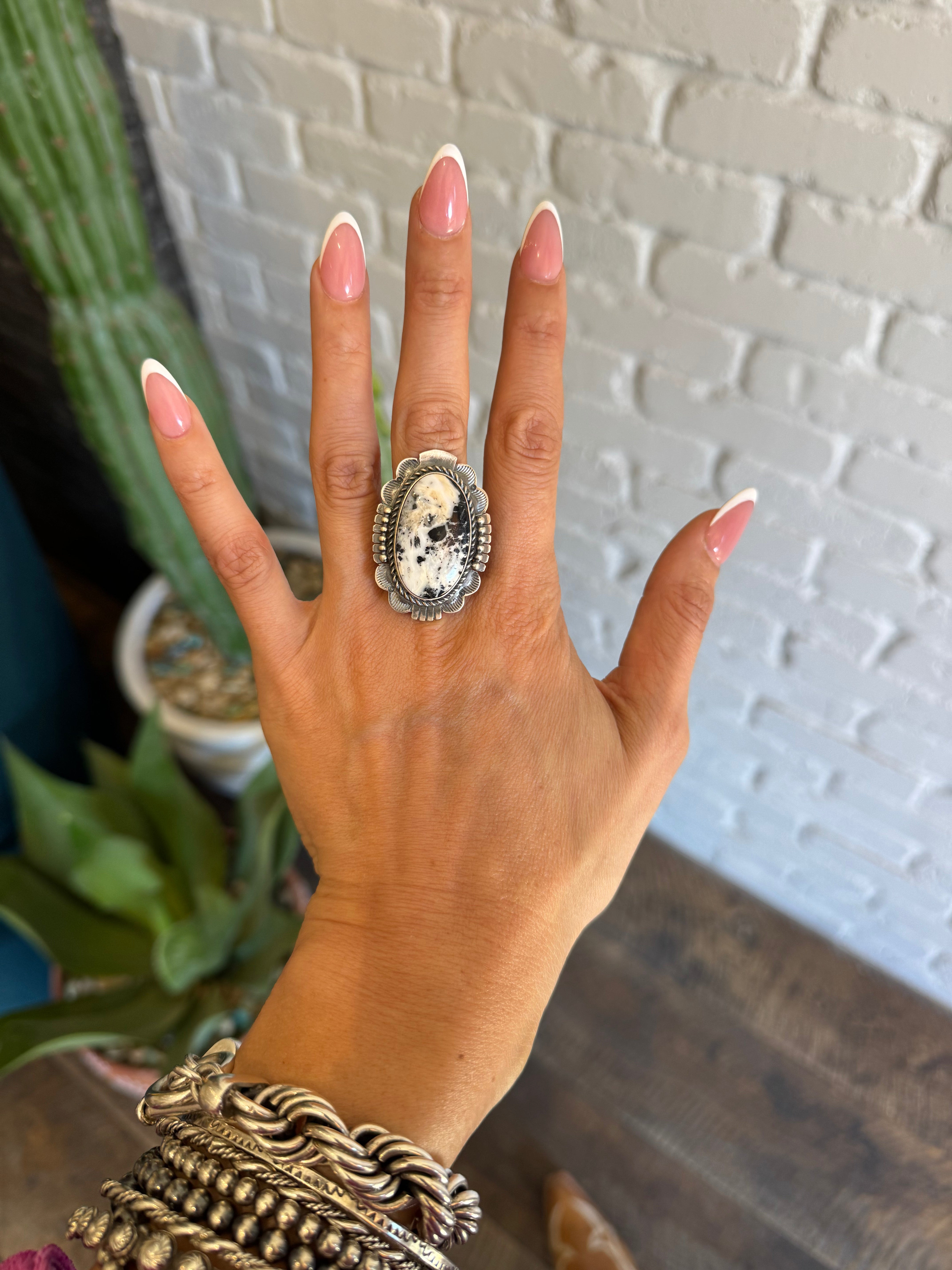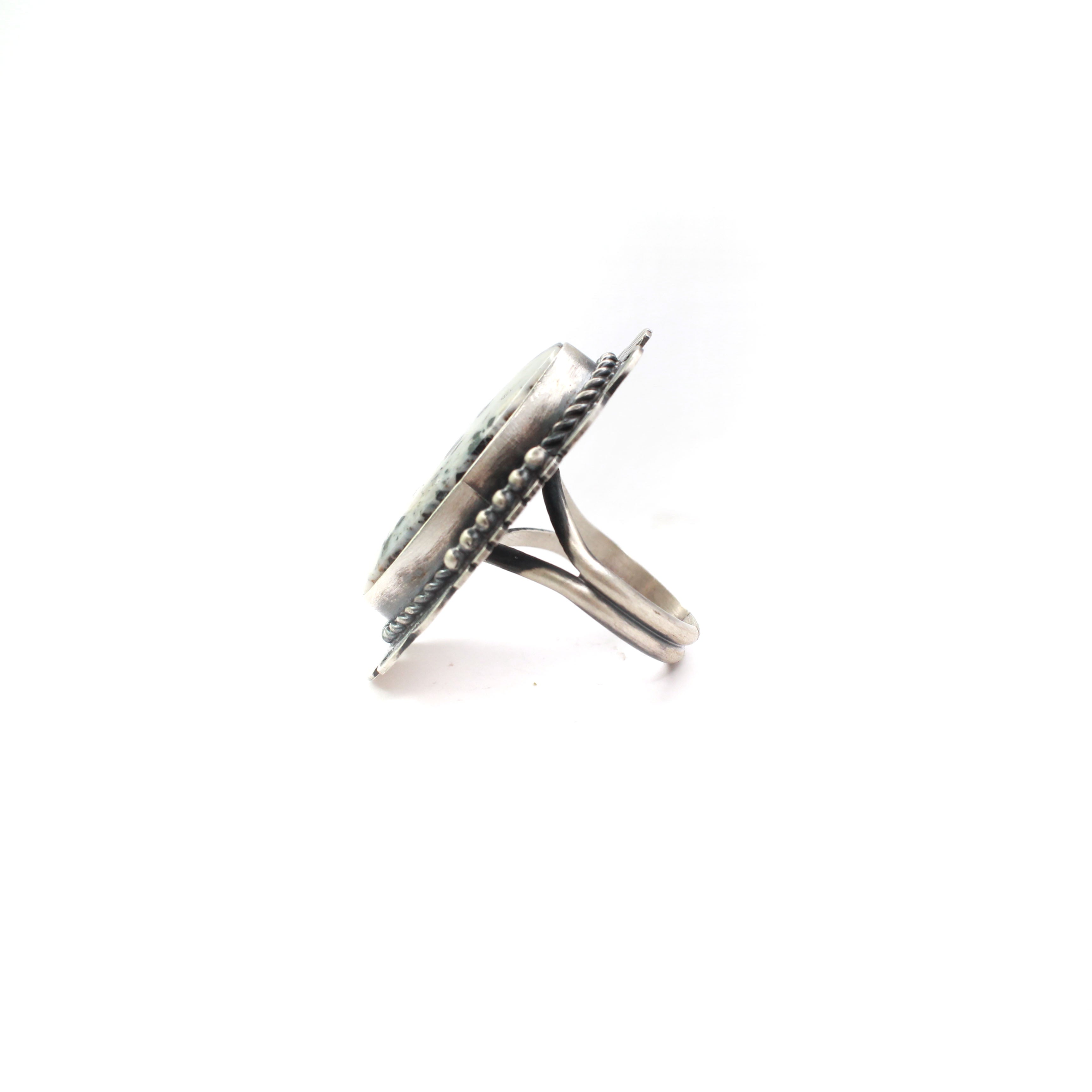White Buffalo is in fact NOT turquoise. Although White Buffalo is often sold as turquoise, it's classification is actually magnesite and alumite. Its unique coloring comes from the presence of Calcite mineral. The only mine known to be home to White Buffalo is The Dry Creek Mine in Tonopah, NV. It was first discovered by the Otteson family in 1993. The name derives from the Native American belief that white buffaloes are pure and rare like the white buffalo stone. The white stone is surrounded by black and brown flint-like chert which creates beautiful patterns, and sometimes in rare pieces, a spider-web matrix. The stone appears in veins, is as hard as turquoise (Mohs hardness scale of 5.5 to 7.5) and cuts and polishes like turquoise.