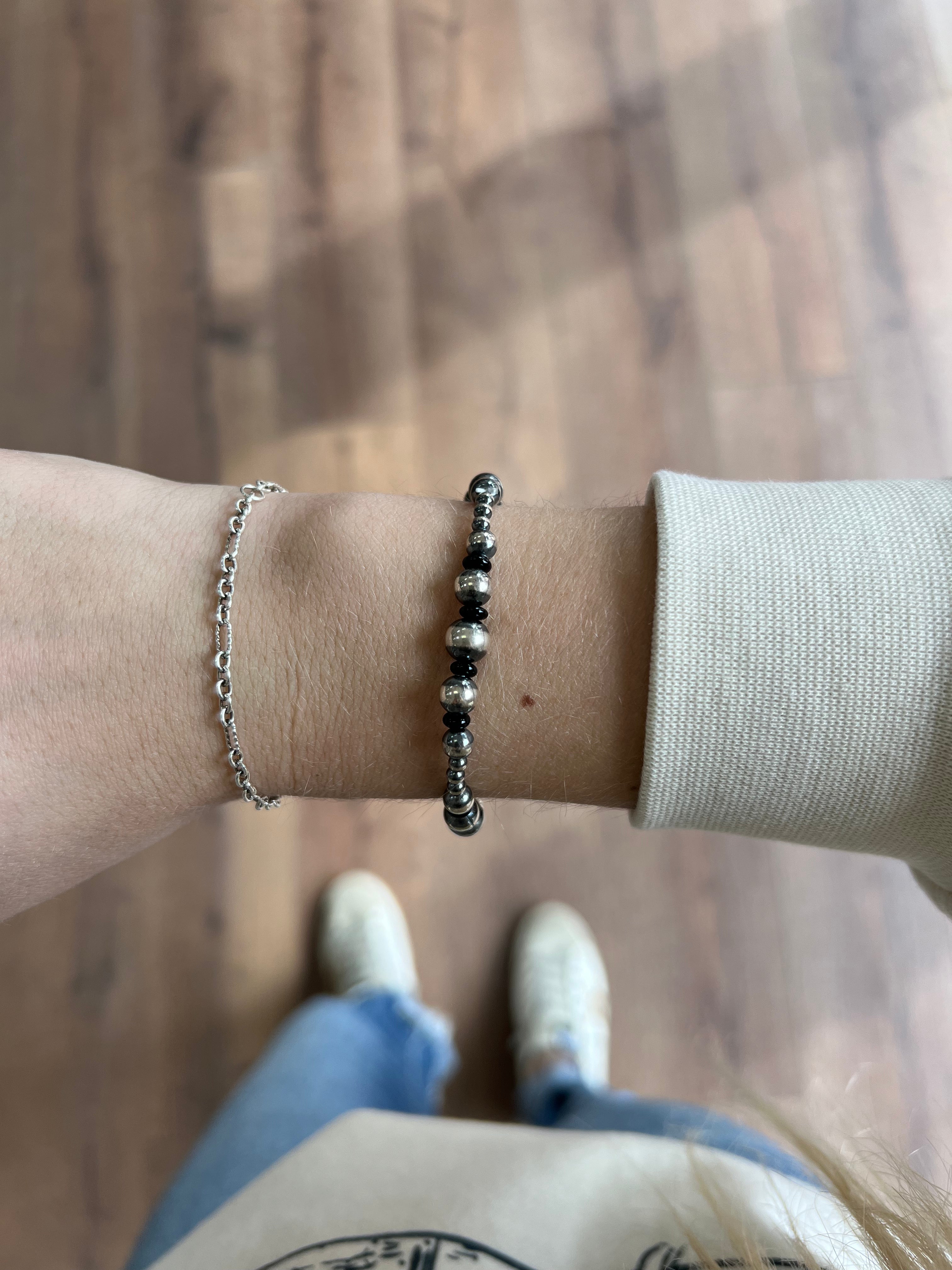 Multi Size Navajo Pearl Stretch Bracelet- Onyx