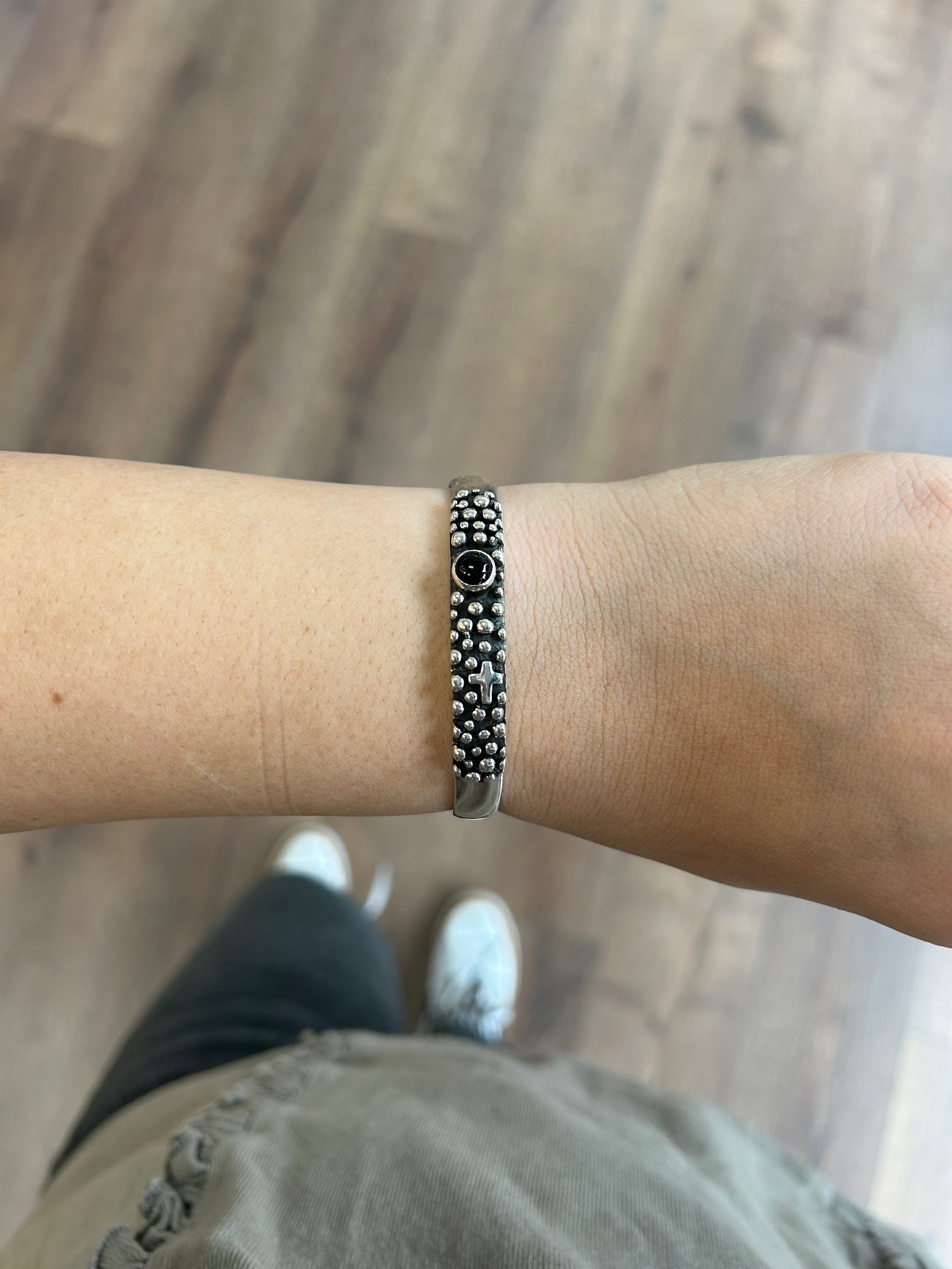 Inside circumference measurements listed for cuff bracelets represent the total inside circumference, including the gap. When selecting a cuff bracelet, keep in mind that the gap allows for some flexibility in sizing, as cuffs can be gently adjusted for a more comfortable fit. Cuffs with multiple stones may be adjustable on a case-by-case basis. If the listed measurements do not meet your needs, we recommend inquiring about adjustability before purchasing. Improperly adjusting cuffs can compromise the stone settings.