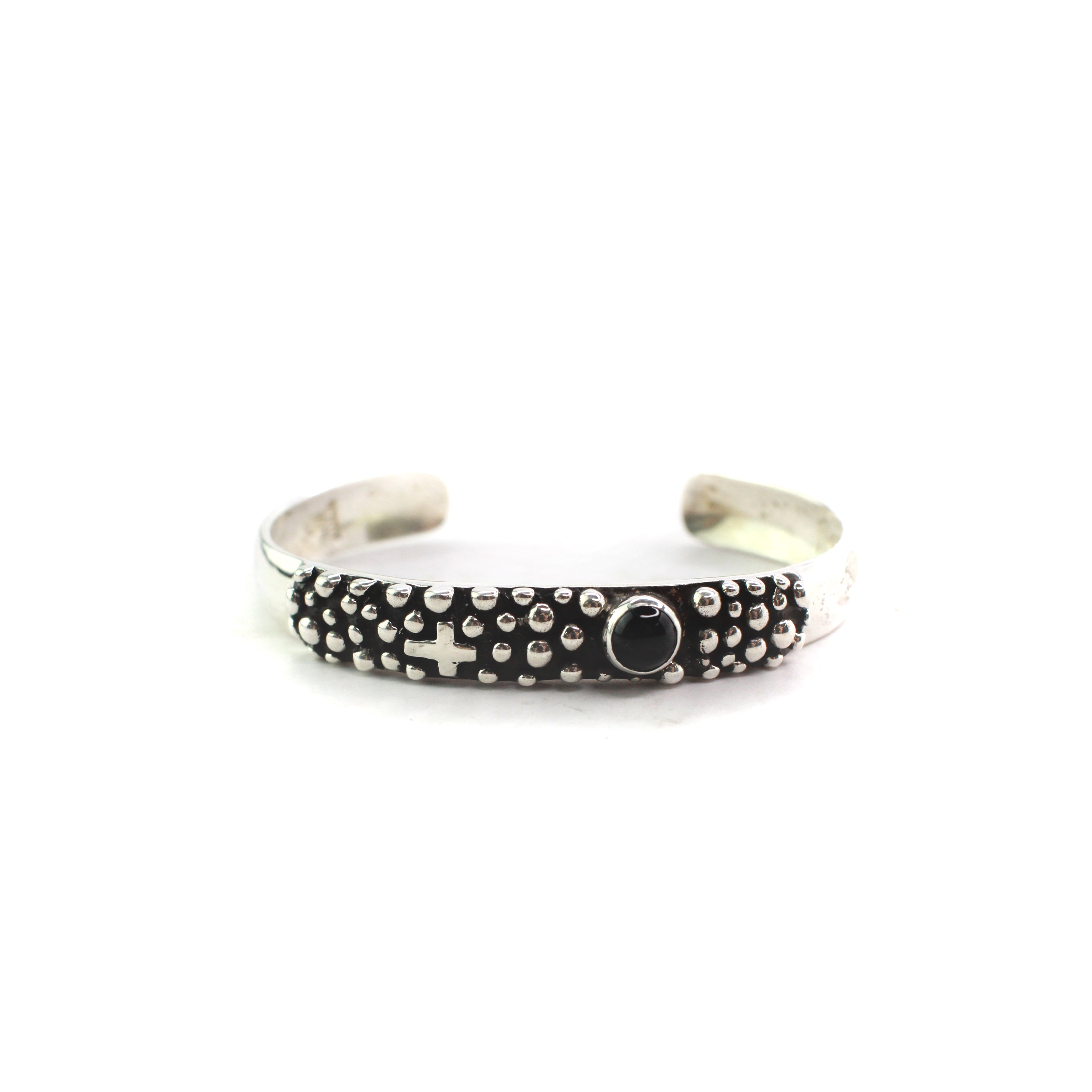 Onyx is a captivating variety of gemstone that originates from chalcedony, a silicate mineral primarily composed of calcite, similar to marble and granite. Onyx forms naturally from calcite in caves and bedrock openings worldwide. We exclusively use the black variation in our jewelry. Read More