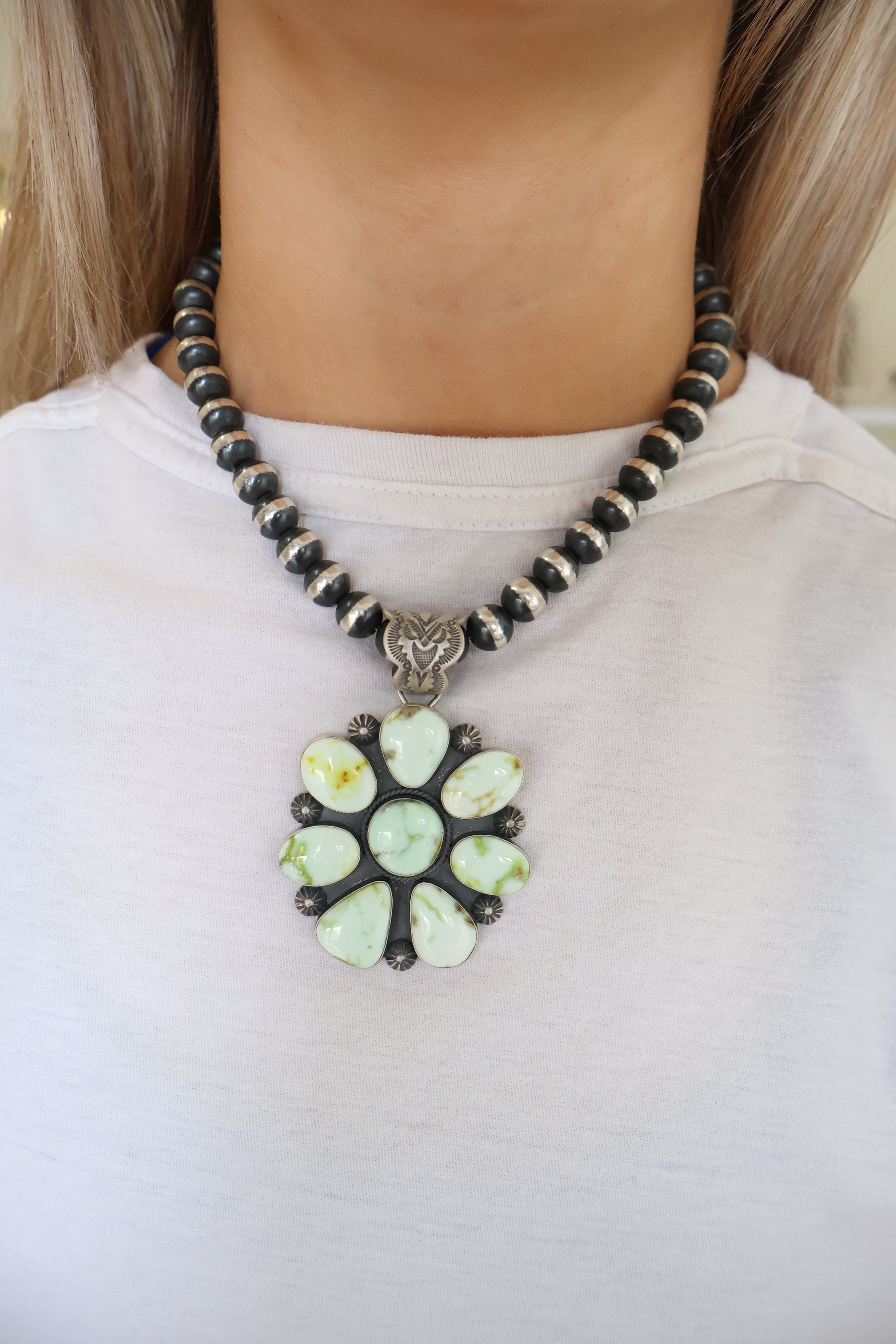 Pictured on 10mm, 16" Navajo Pearls Not Included