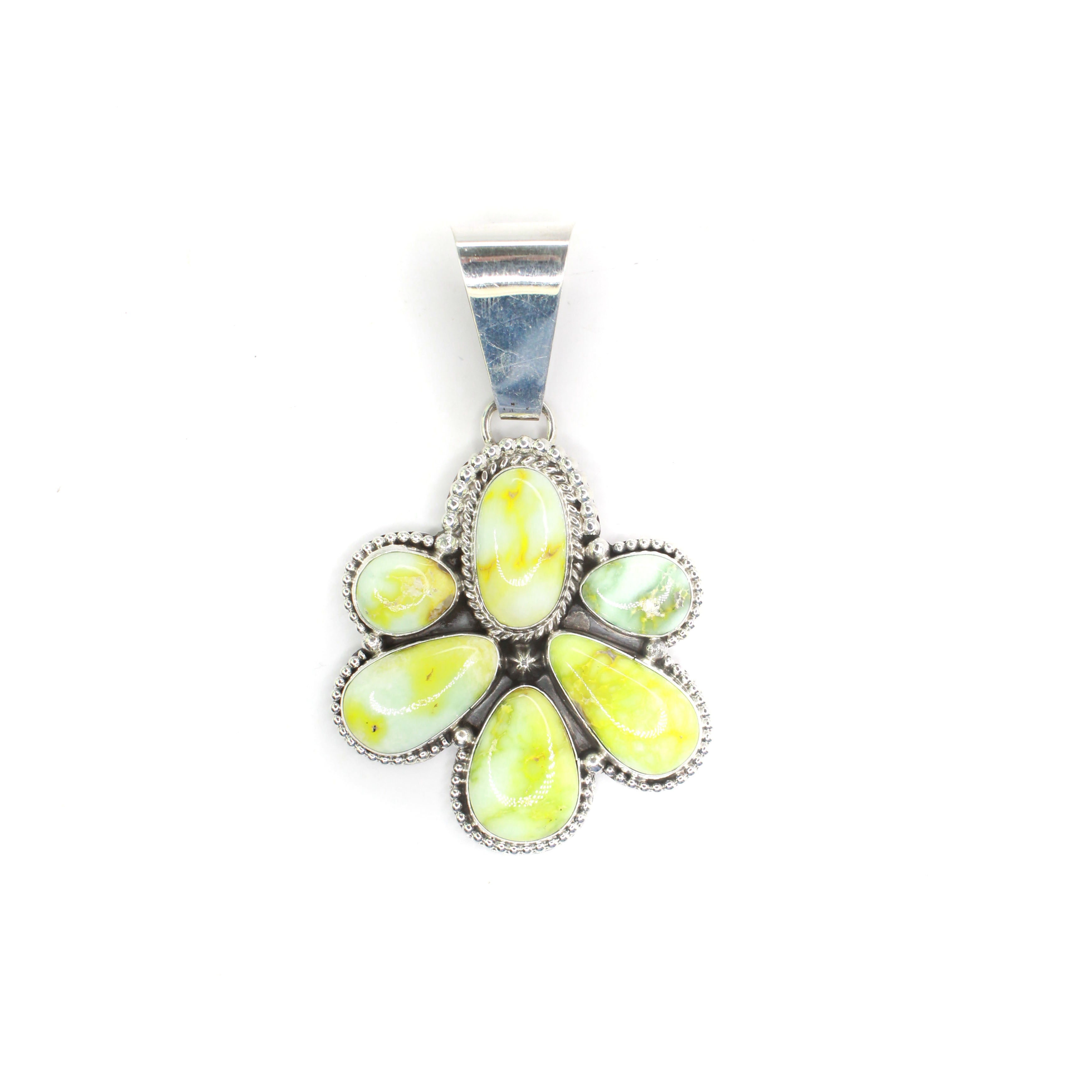 Navajo silversmith Eula Wylie hails from Ganado, Arizona, located on the Navajo Reservation. She is renowned for her exquisite use of Sonoran Beauty Turquoise clusters, elegantly wrapped in delicate twist wire designs and set against a backdrop of oxidized sterling silver. Eula previously crafted jewelry for Atkins Trading Company.