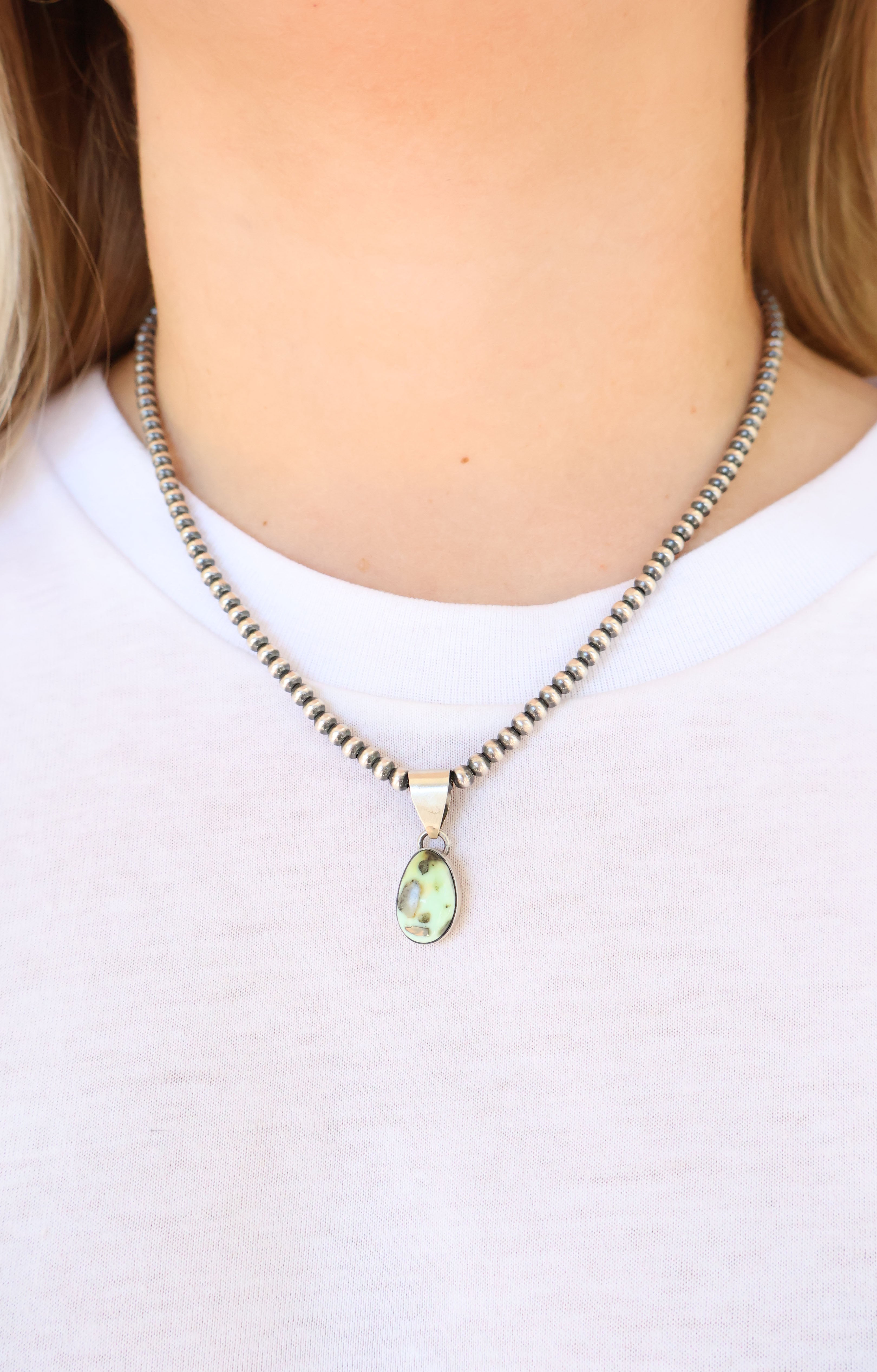 Pictured on 4mm, 18" Navajo Pearls Not Included