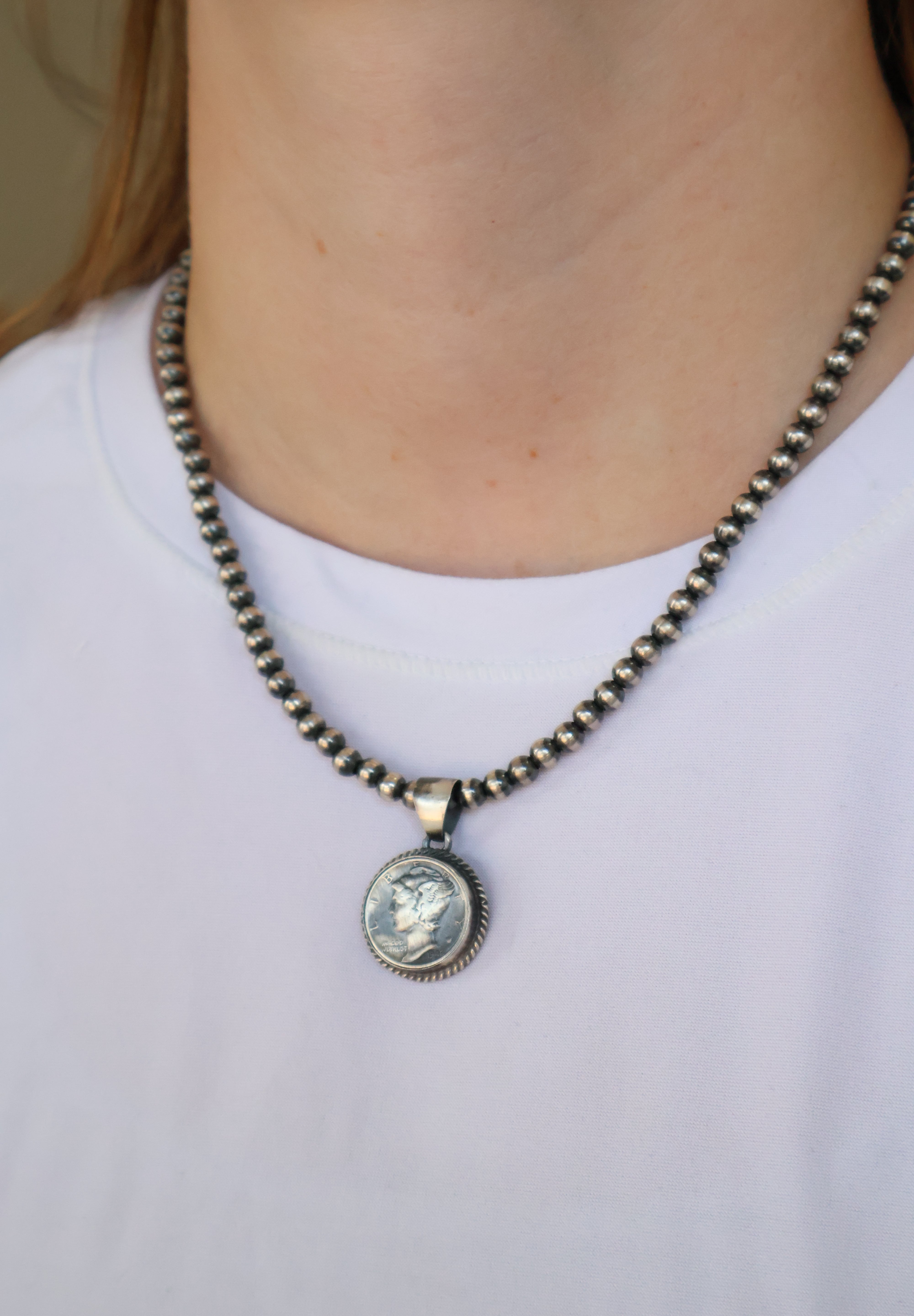 Pictured on 5mm, 18" Navajo Pearls Not Included