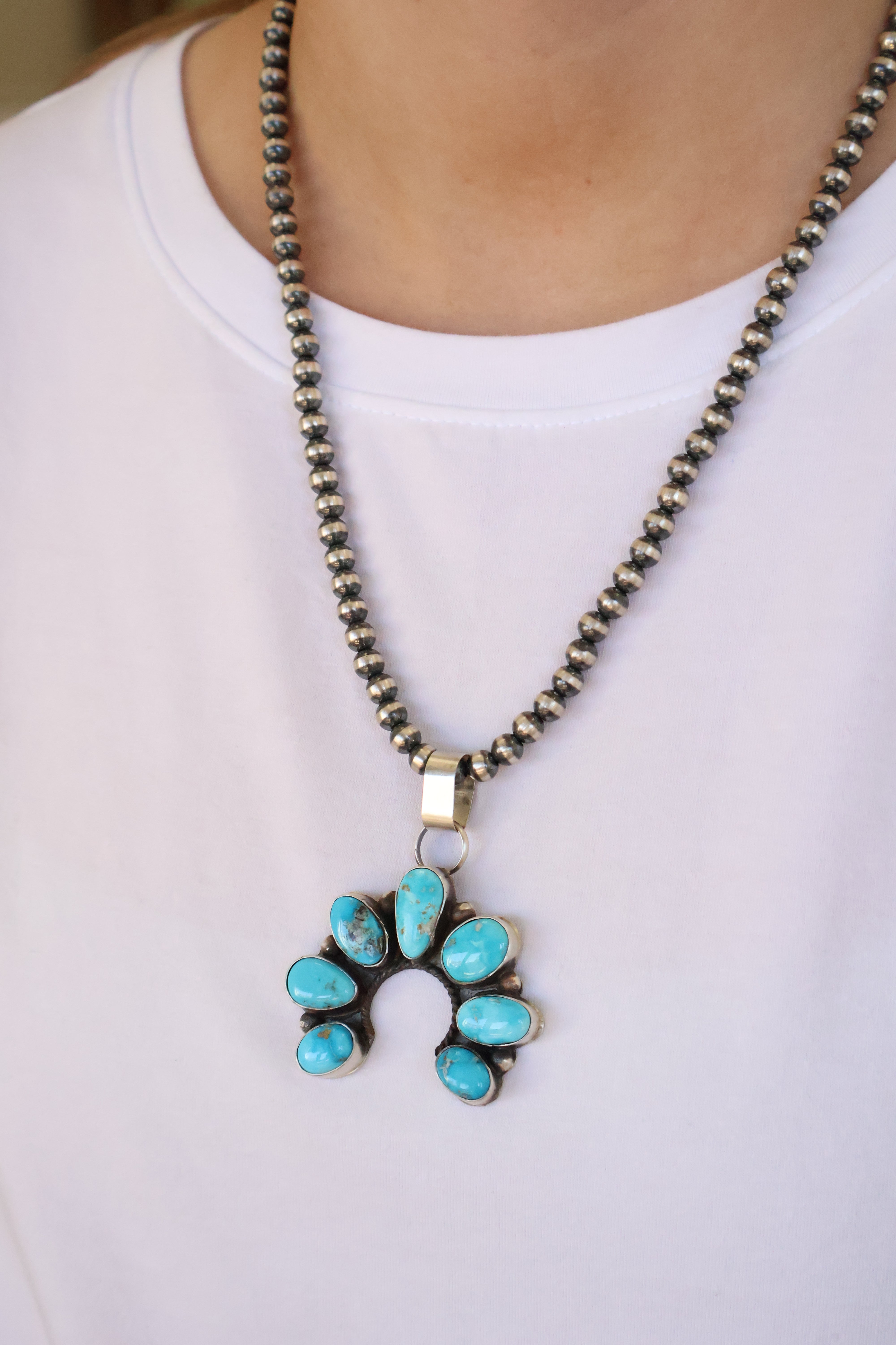 Pictured on 6mm, 22" Navajo Pearls Not Included
