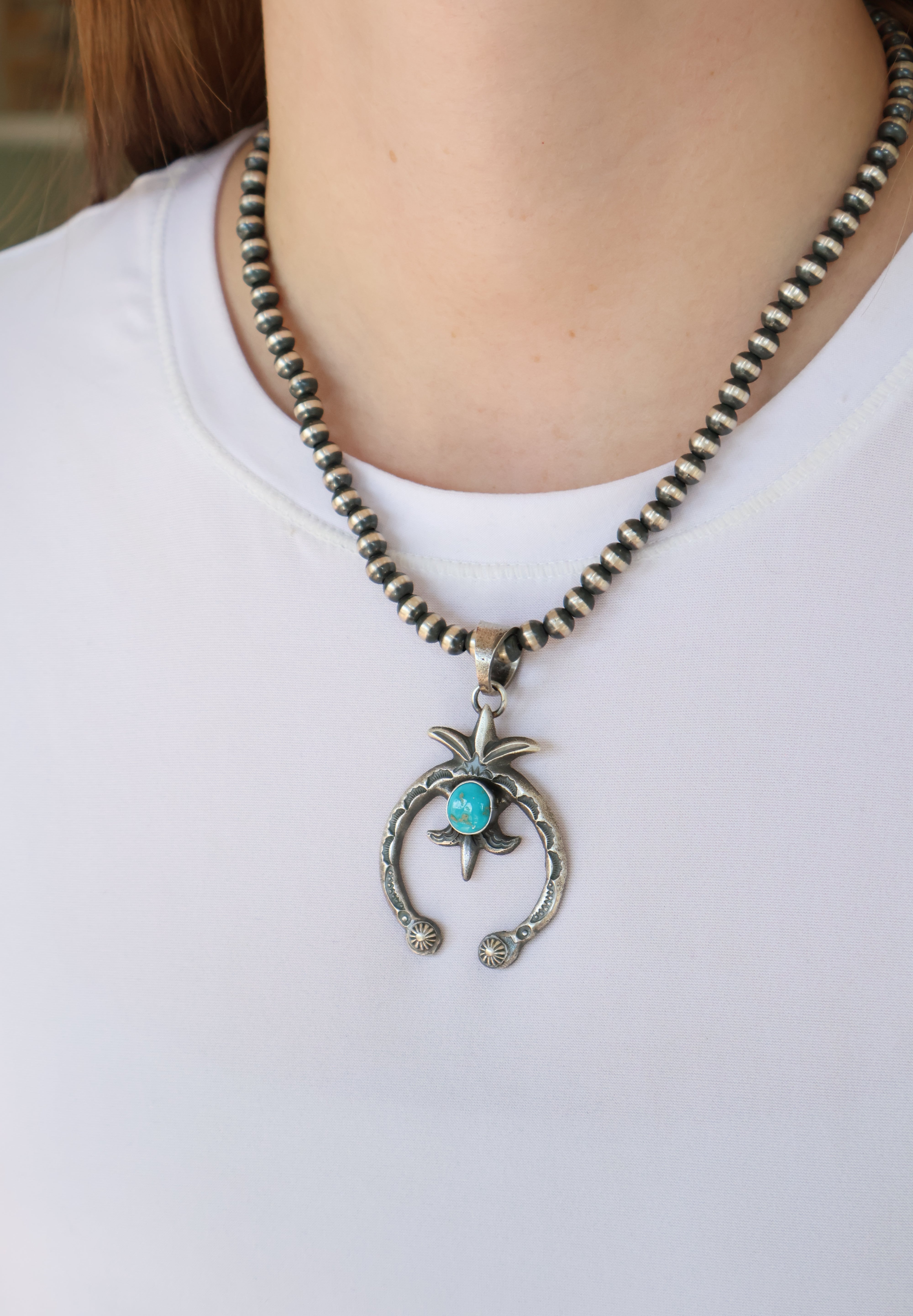 Pictured on 6mm, 18" Navajo Pearls Not Included