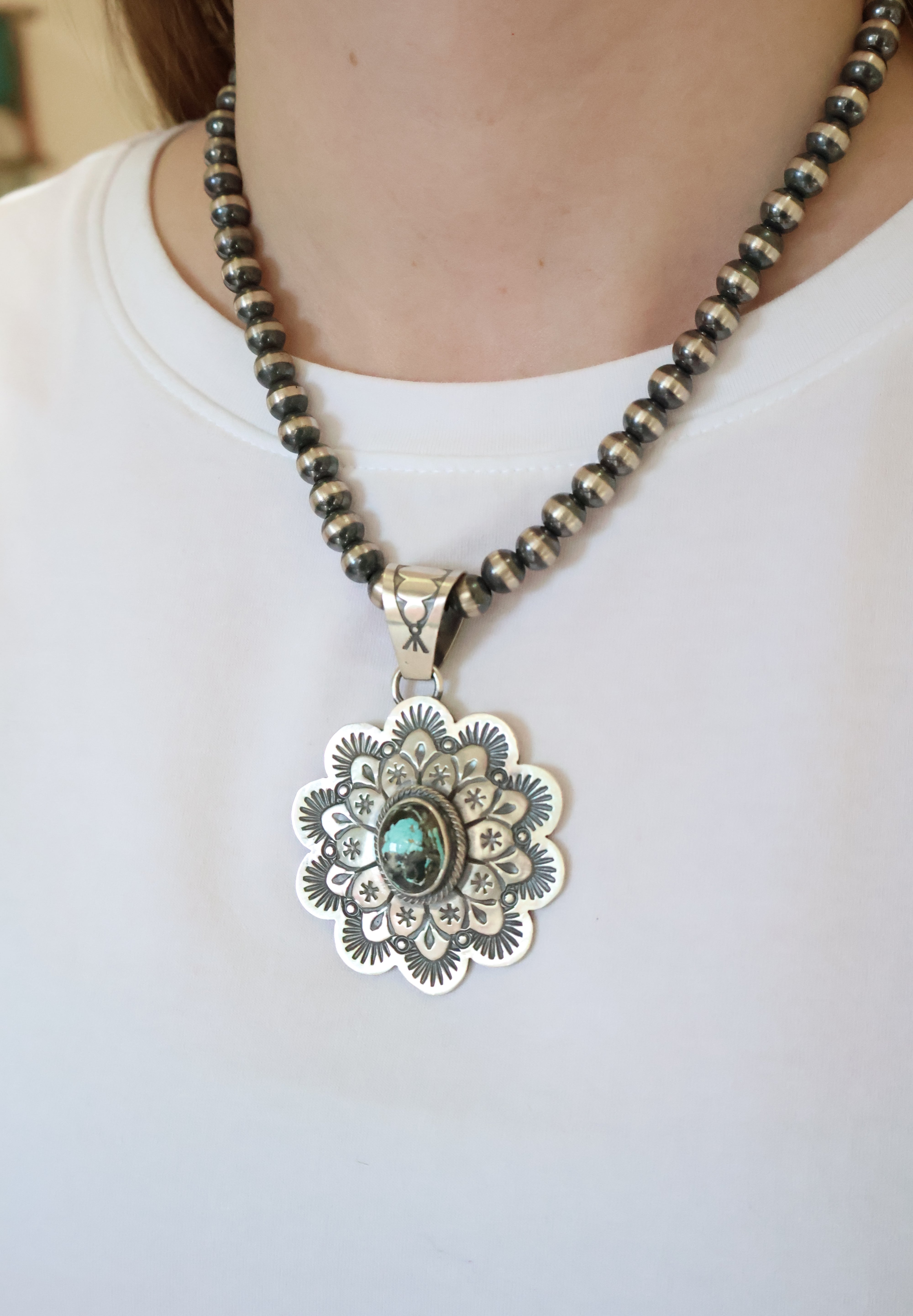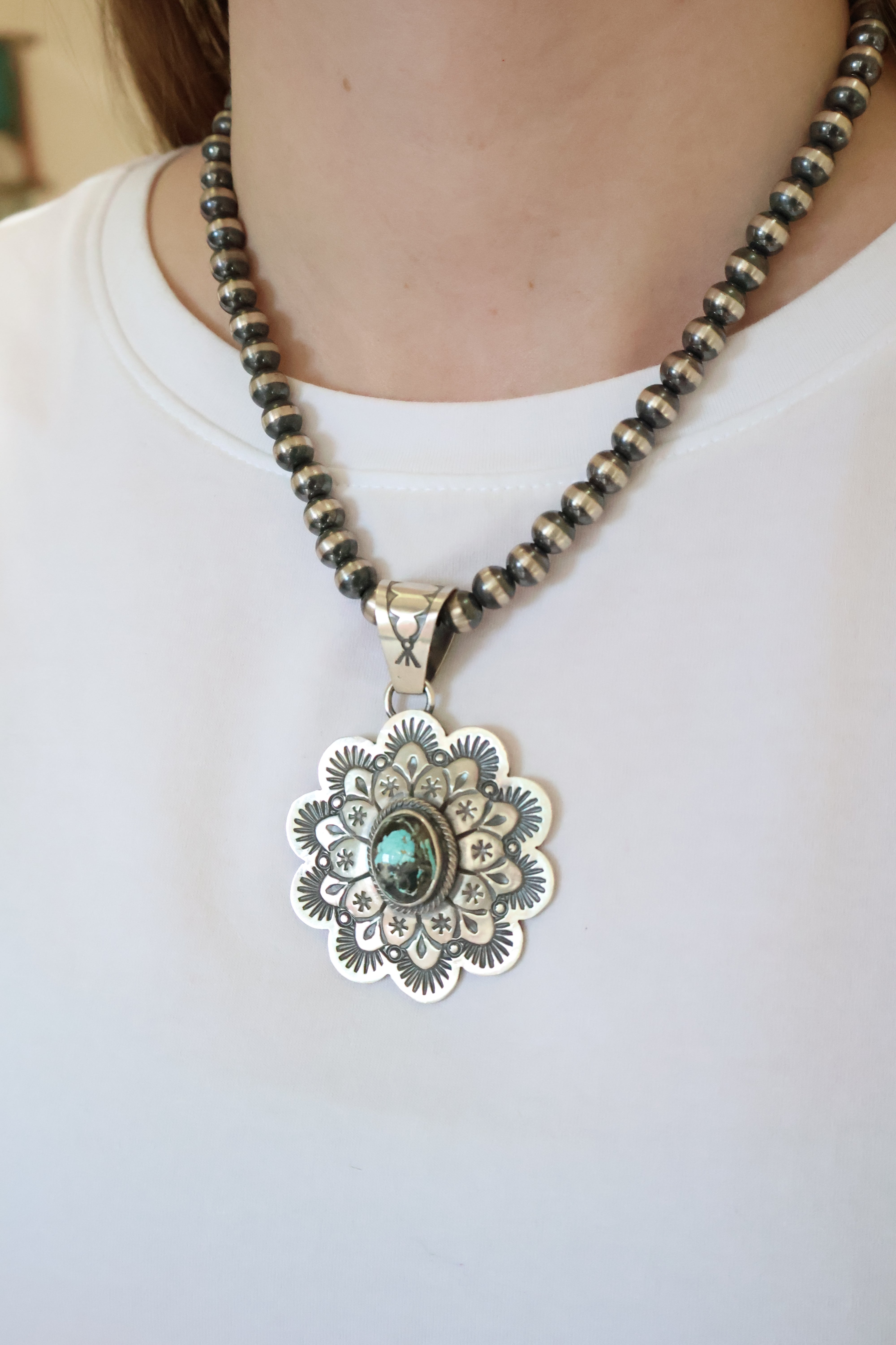 Pictured on 8mm, 18" Navajo Pearls Not Included