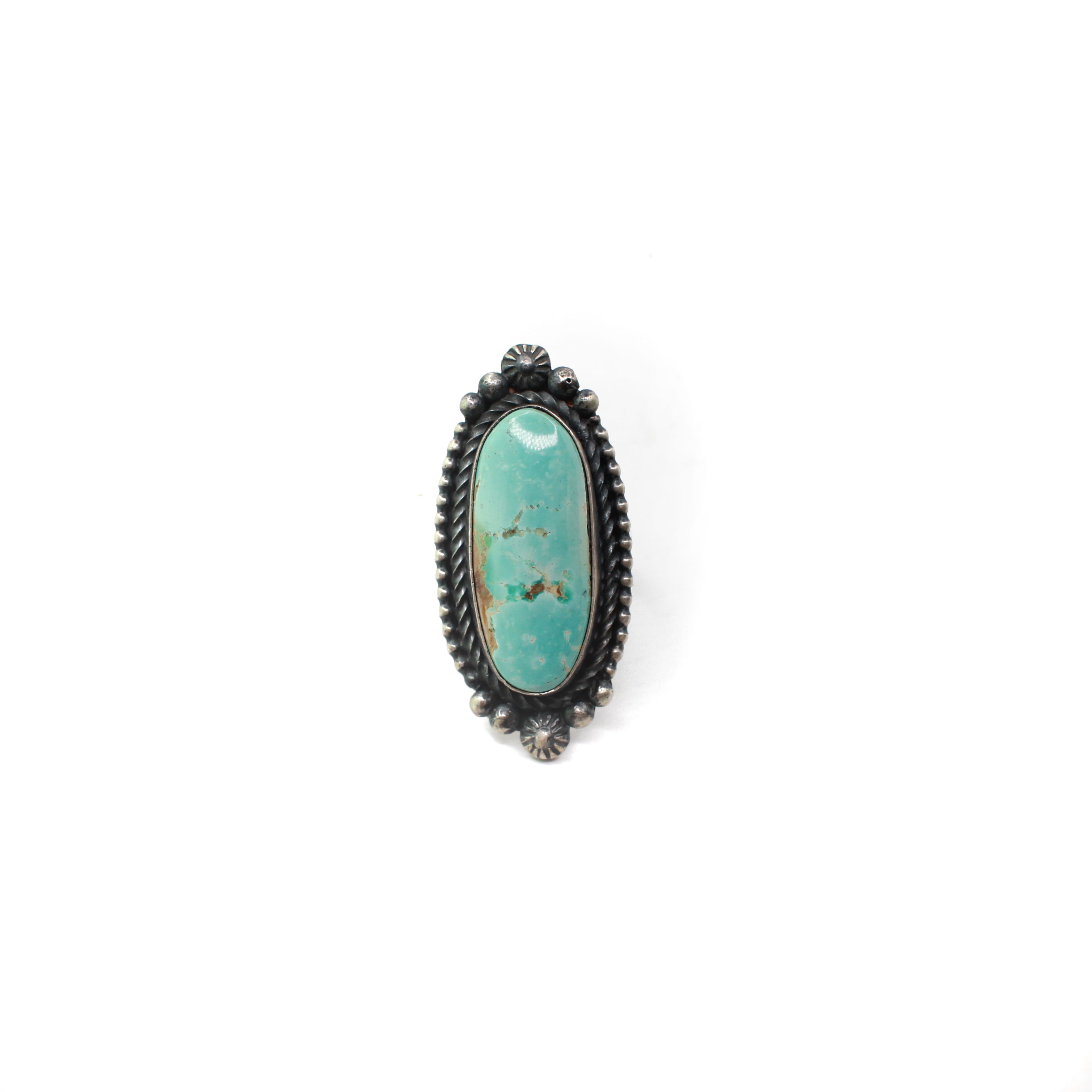 Eli Skeets is renowned as a master silversmith, distinguished by his hallmark oxidized silver borders that beautifully frame stunning turquoise stones. His craftsmanship results in remarkable pieces that are true works of art. One standout creation is a statement ring that not only captivates the eye but is also destined to be a cherished treasure for generations to come.