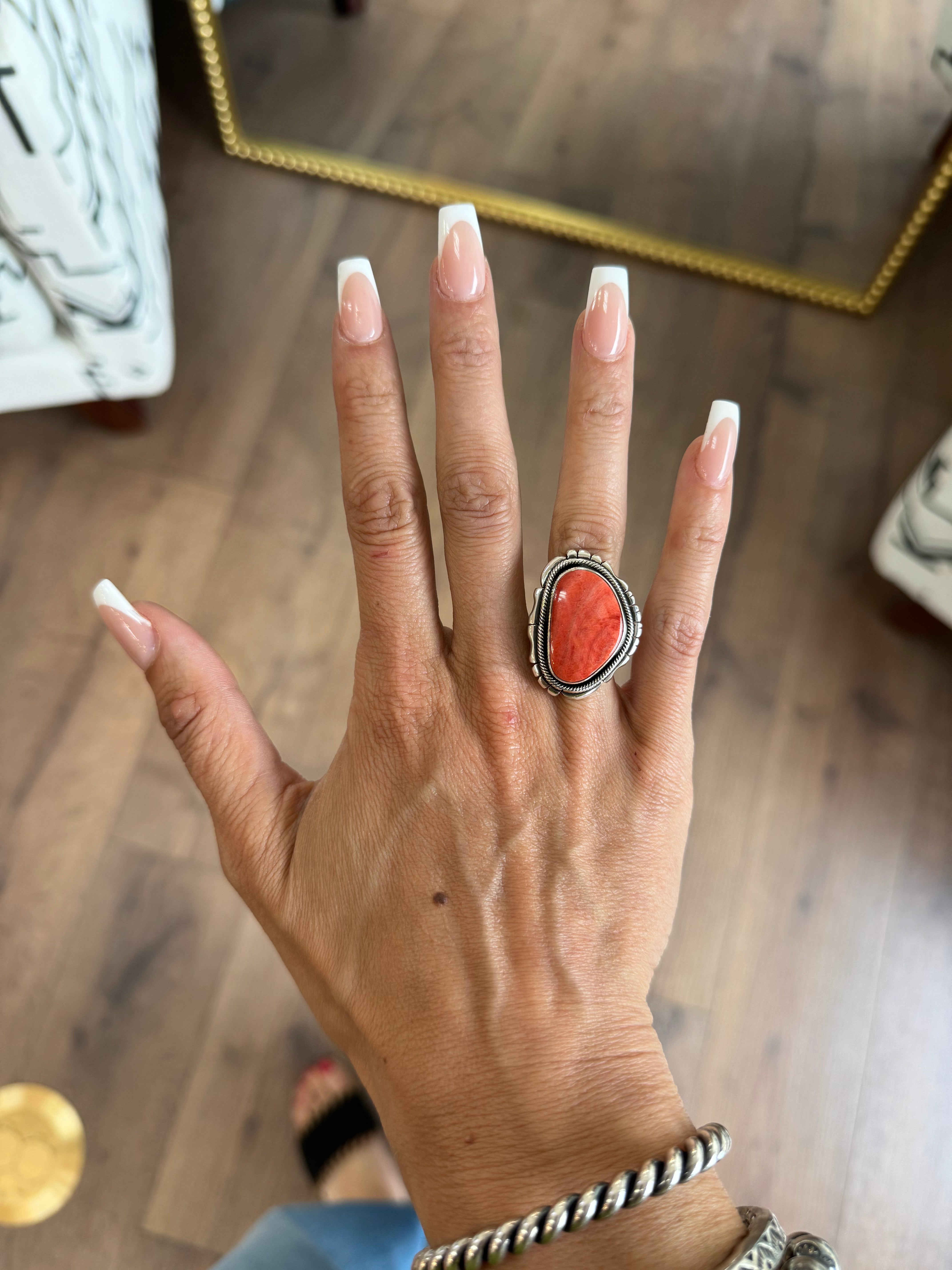 Spiny Oyster is a vibrant shell material commonly found in orange, red, and purple hues, with rare yellow variations. The colors are influenced by the mollusks' diet and the water's depth and temperature. It can be distinguished from coral by the white variations in its shell. Predominantly sourced from the Sea of Cortez (Gulf of California), Spiny Oyster is used extensively in Native American jewelry. Read More