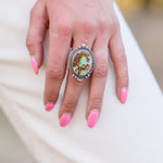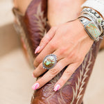 Sheila Becenti is a talented Navajo artist renowned for her outstanding craftsmanship, especially in her cluster work jewelry. With a keen eye for high-quality stones, she creates stunning statement pieces that beautifully reflect her cultural heritage and artistic vision. Her designs artfully blend traditional techniques with a modern twist, resulting in work that is highly coveted within the Native American art community. Sheila's dedication to her craft not only honors her roots but also pushes the boundaries of contemporary Native American jewelry.