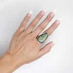 Eli Skeets is renowned as a master silversmith, distinguished by his hallmark oxidized silver borders that beautifully frame stunning turquoise stones. His craftsmanship results in remarkable pieces that are true works of art. One standout creation is a statement ring that not only captivates the eye but is also destined to be a cherished treasure for generations to come.