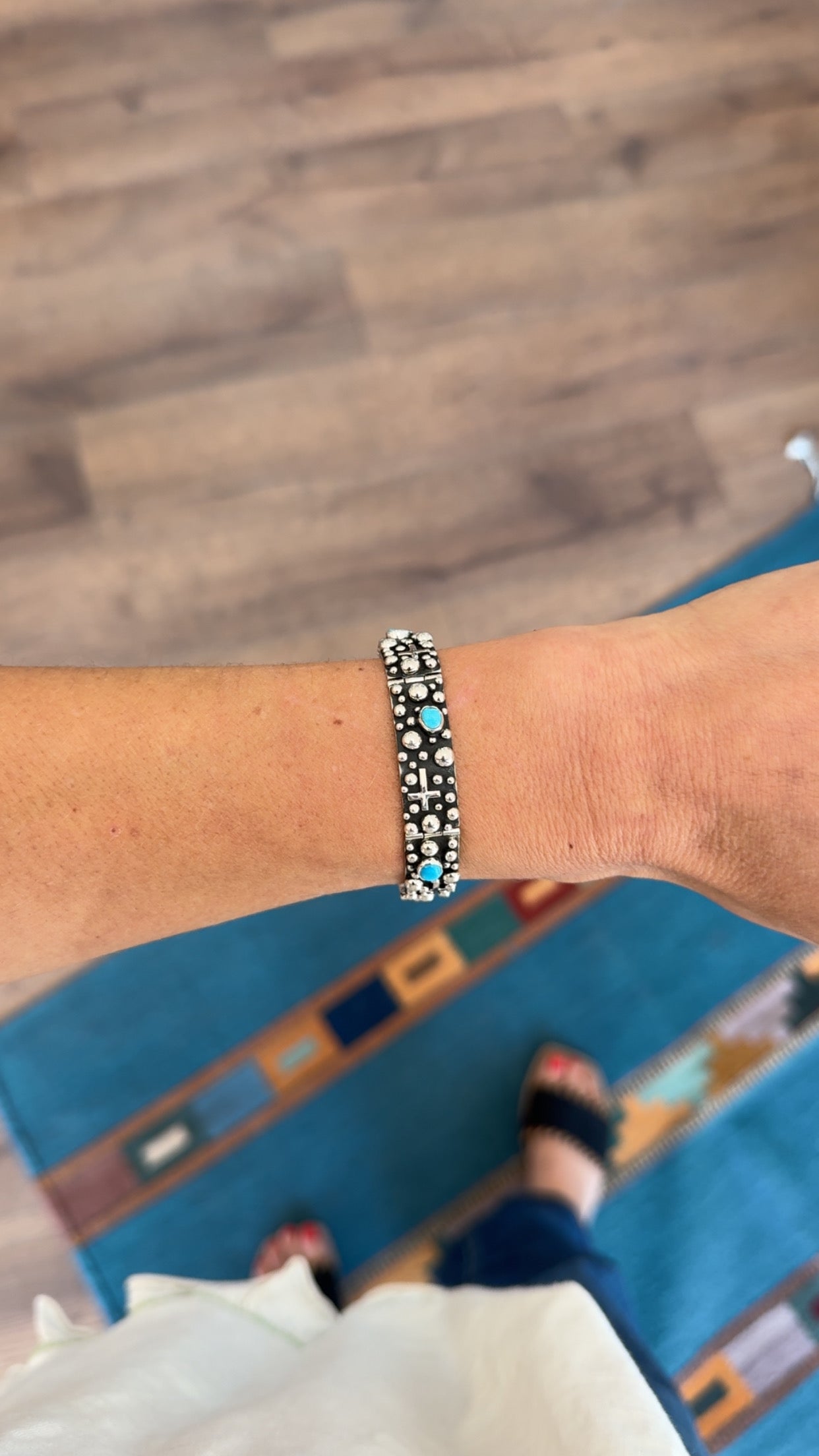 Akee Douglas, a skilled Navajo silversmith from Gallup, New Mexico, draws deeply from his cultural heritage and early exposure to Native American jewelry. His journey in silversmithing reflects a dedicated pursuit of excellence, resulting in finely crafted designs that honor traditional artistry. Known for his distinct style, Akee uses oxidized backgrounds to create bold contrasts that highlight the vibrant beauty of high-quality stones, showcasing his unique vision and reverence for his craft.