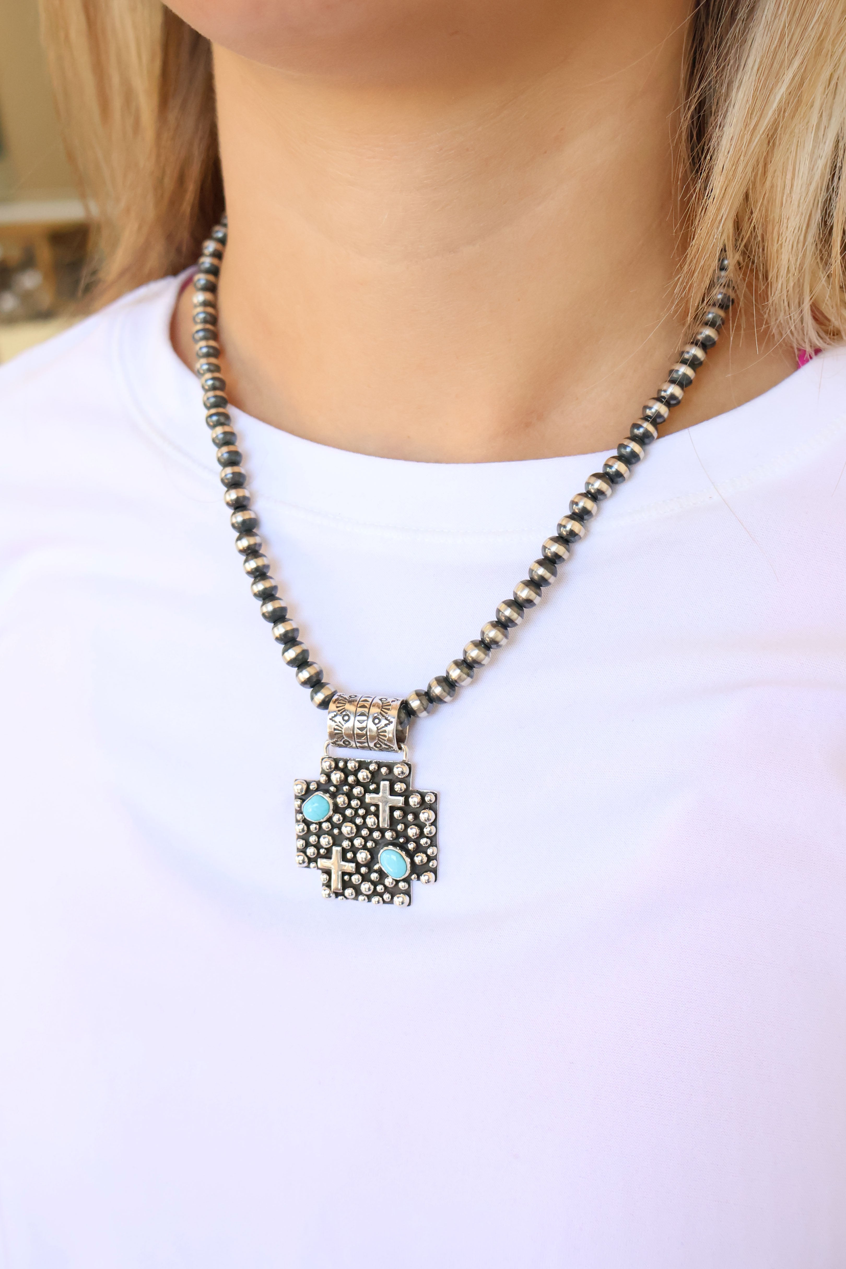 Pictured on 4mm, 18" Navajo Pearls Not Included