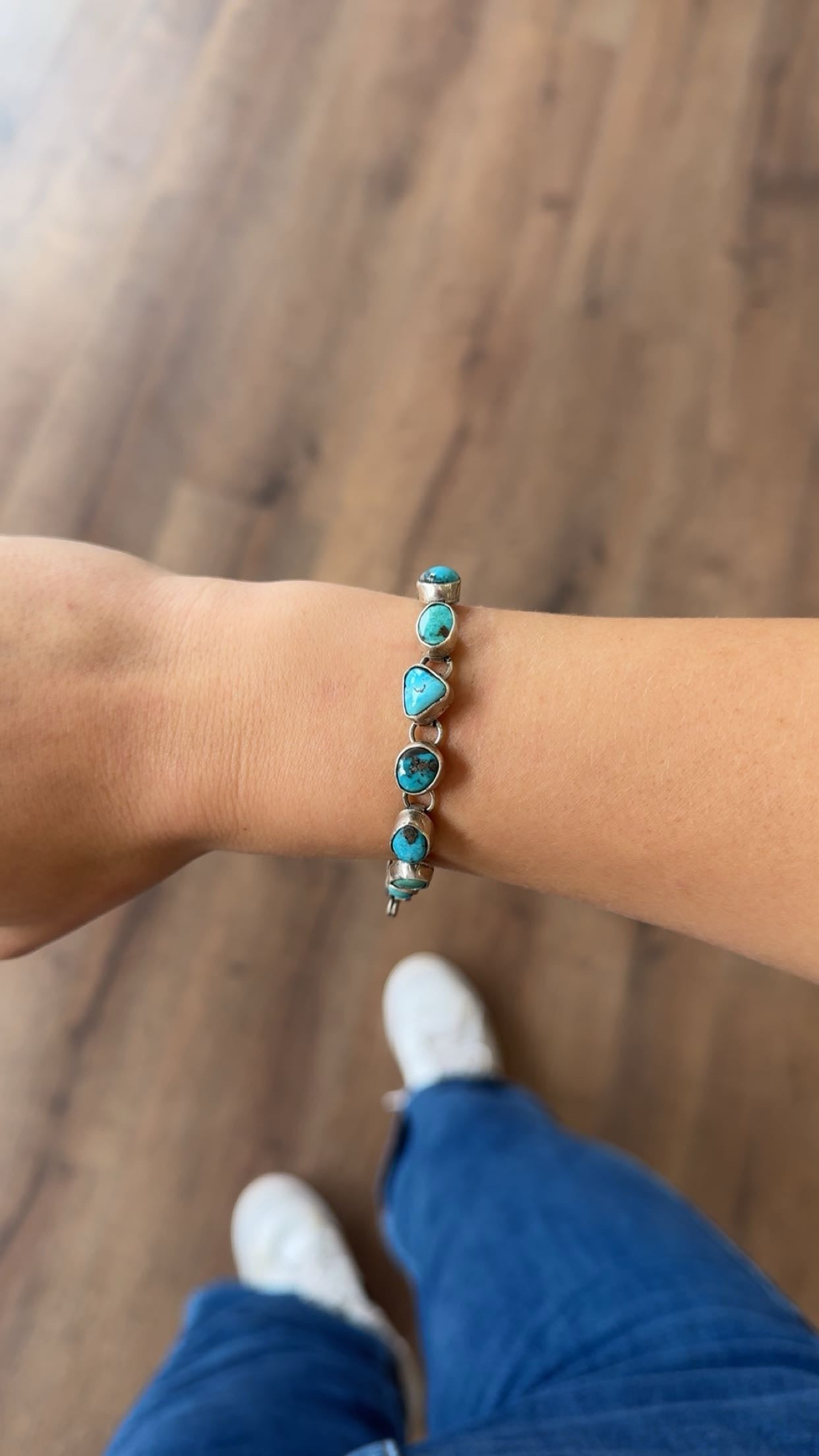Sonoran turquoise, mined from the Campitos Mountain near Cananea, Sonora, Mexico. This region produces several distinctive types, including Sonoran Gold, known for its vibrant colors like aqua blue, lime, and two-tone blue and green with a golden-brown matrix; Sonoran Rose, a natural bright blue turquoise; and Sonoran Blue, valued for its hardness, shiny pyrite flakes, and black oxide veins.