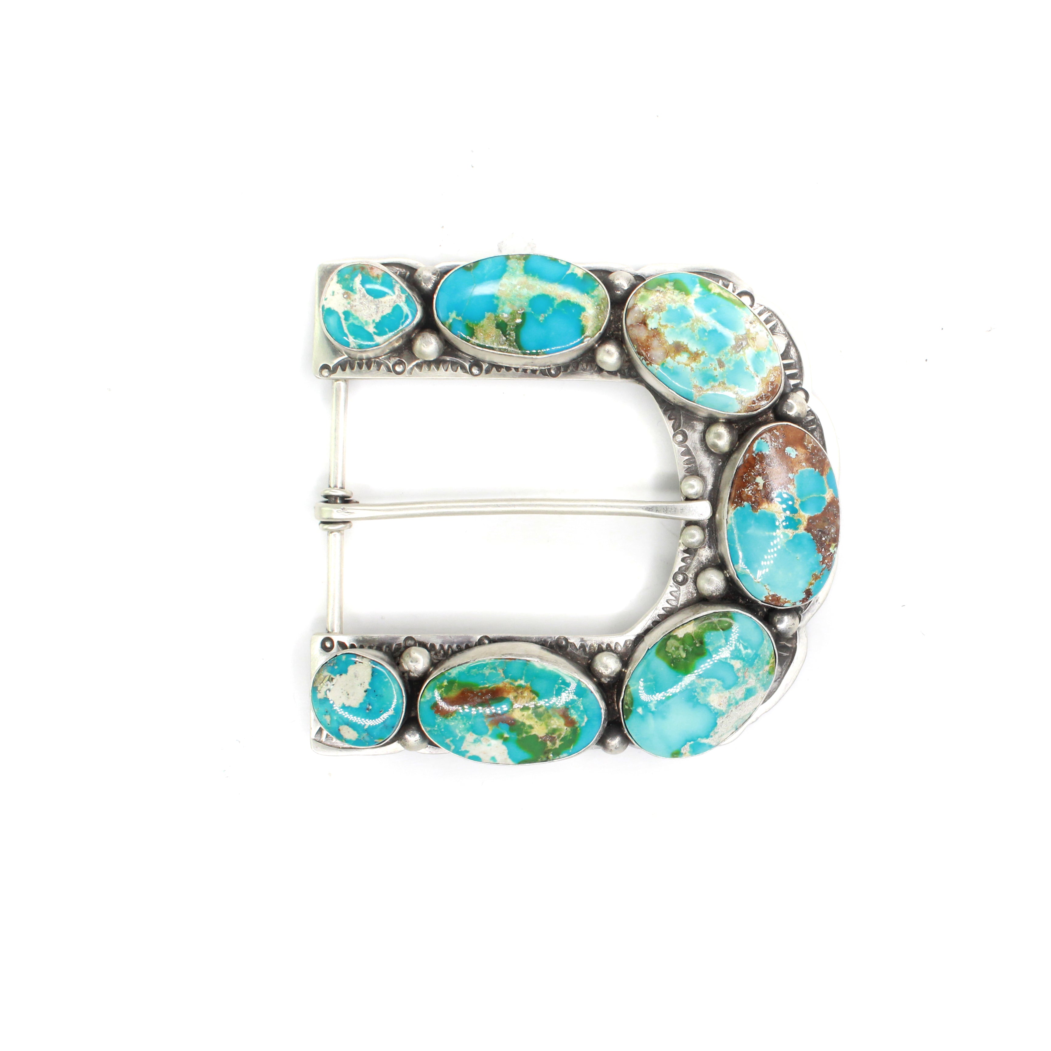 Sonoran turquoise, mined from the Campitos Mountain near Cananea, Sonora, Mexico. This region produces several distinctive types, including Sonoran Gold, known for its vibrant colors like aqua blue, lime, and two-tone blue and green with a golden-brown matrix; Sonoran Rose, a natural bright blue turquoise; and Sonoran Blue, valued for its hardness, shiny pyrite flakes, and black oxide veins.