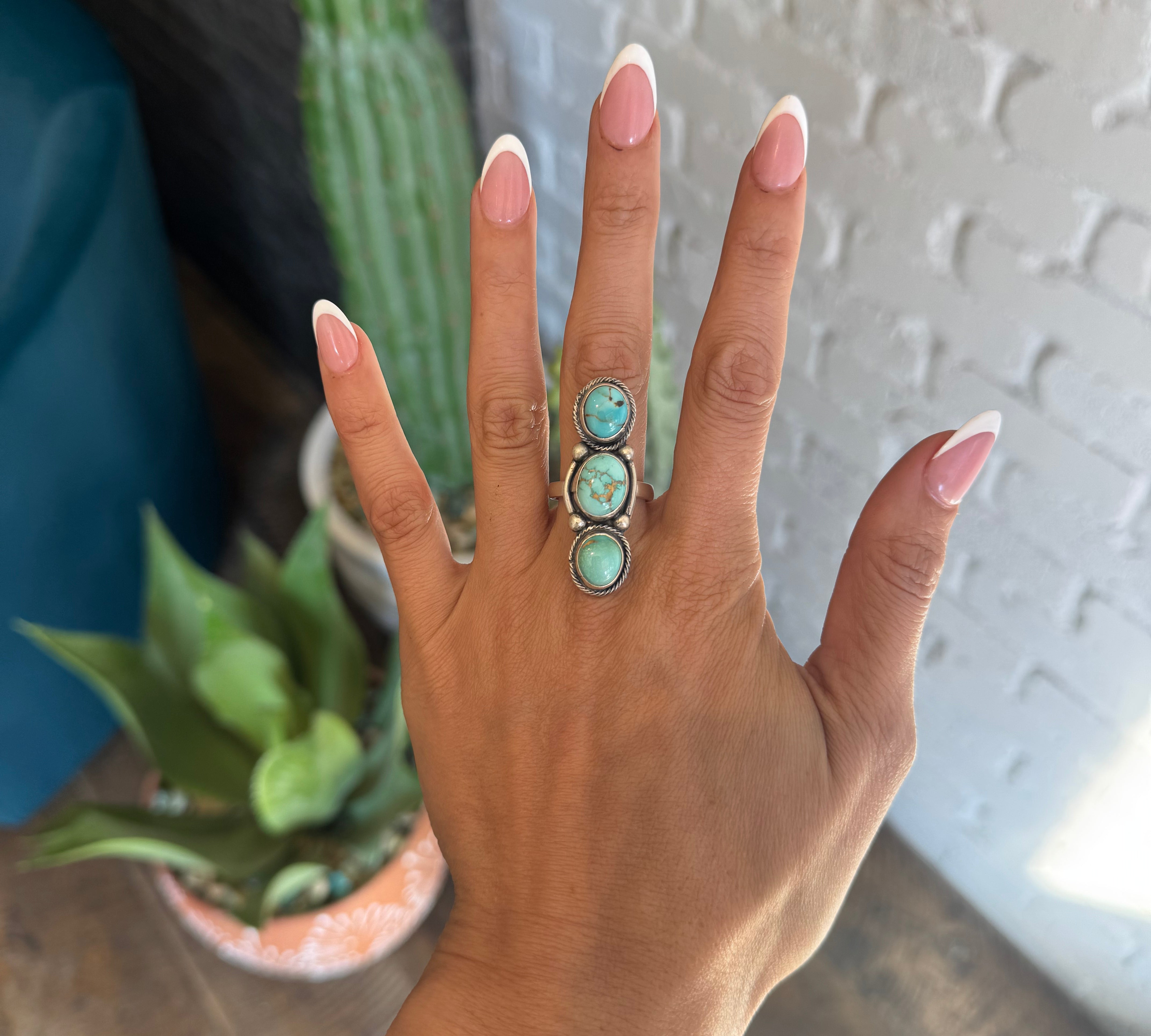 The area in which sonoran turquoise is mined has a rich history in the Sonora Desert, a region that has been a source of high-quality turquoise for centuries. The mine is located at Campitos Mountain, just outside of Cananea, Sonora, Mexico, only about 35 miles from the Arizona border. The local economy is heavily dependent on the large copper mines in the area, with turquoise often being a by-product of these operations. Several varieties of turquoise are produced in the region, with Campitos Turquoise being the most prominent. This turquoise has been mined for centuries and traded northward through Native American trade routes. Sonoran turquoise is unique in that it is typically found in clay deposits as nuggets, rather than in veins like many other types of turquoise. The Sonoran mine is known for producing a range of turquoise varieties, including Sonoran Gold, which is admired for its vibrant colors such as aqua blue, lime, bright green, and a mix of blue and green, often with a golden to brown matrix. Sonoran Rose is a natural bright blue turquoise, hand-mined from newer deposits, while Sonoran Blue is prized for its hardness on the Mohs scale, as well as its shiny pyrite flakes and black oxide veins. Just like most turquoise, however, Sonoran turquoise is relatively soft, which is why a significant portion of it is treated or stabilized to enhance its durability for use in jewelry and other applications.