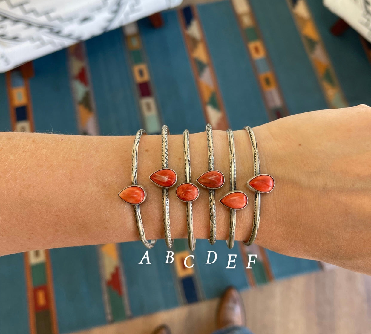 Spiny Oyster most commonly comes in orange, red, and purple. Although very rare it can be found in a yellow hue too. Their colors are based on what the mollusks eat and the depth of water/temperature where they live. One can distinguish the shell from the commonly confused coral by the white variation found throughout. Spiny Oysters are found throughout the world in warm tropical waters. The majority of Spiny Oyster used in Native American jewelry comes from the Sea of Cortez (Gulf of California) on the Baja Peninsula. There are over 70 species of Spiny Oyster found thoughout the world. The two species most commonly used in Native American Jewelry are Spondylus Princeps and Spondylus Calcifer. Spondylus Princeps are primarly coral red and orange. They can be found in 15- 50mm deep waters and they favor sandy areas.Spondylus Calcifer is most commonly used. They are orange and purple in color with red banding along the edges. Their spines are shorter but grows to be thicker and larger than the Princeps species. They favor rocky formations and often attach themselves to the rocks. Spiny Oyster is more closely related to mussels. They are also known as thorny oyster or scientifically bivalve mollusks. Spiny Oyster is still harvested by hand by divers. It is believed that the spines may have evolved to attract other organisms to settle on the shell to conceal it from predators. Spiny Oyster has been used by Native Americans since pre-historic times, unlike red coral which was harvested in the Mediterranean and introduced by Europeans.