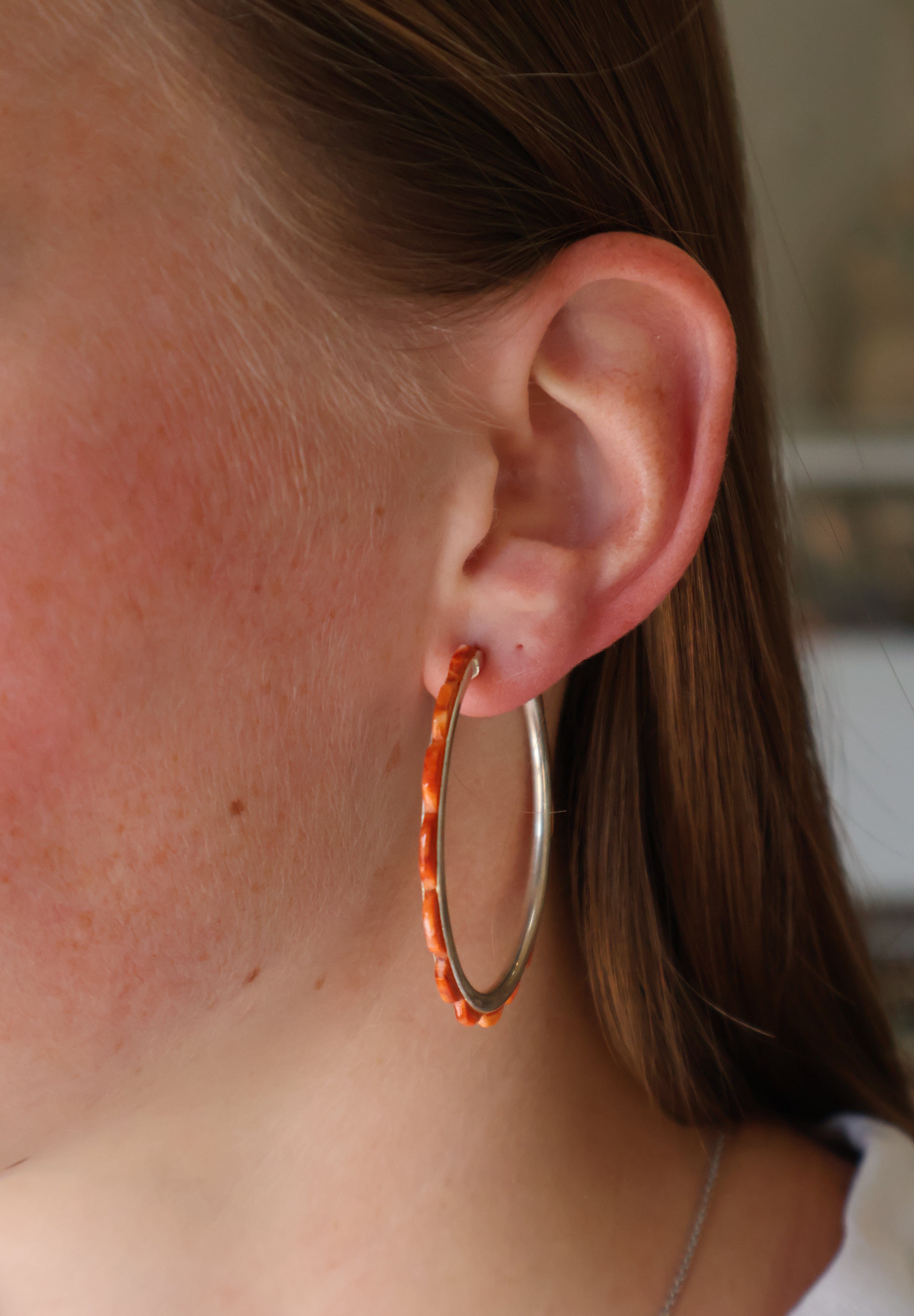 Spiny Oyster is a vibrant shell material commonly found in orange, red, and purple hues, with rare yellow variations. The colors are influenced by the mollusks' diet and the water's depth and temperature. It can be distinguished from coral by the white variations in its shell. Predominantly sourced from the Sea of Cortez (Gulf of California), Spiny Oyster is used extensively in Native American jewelry. Read More