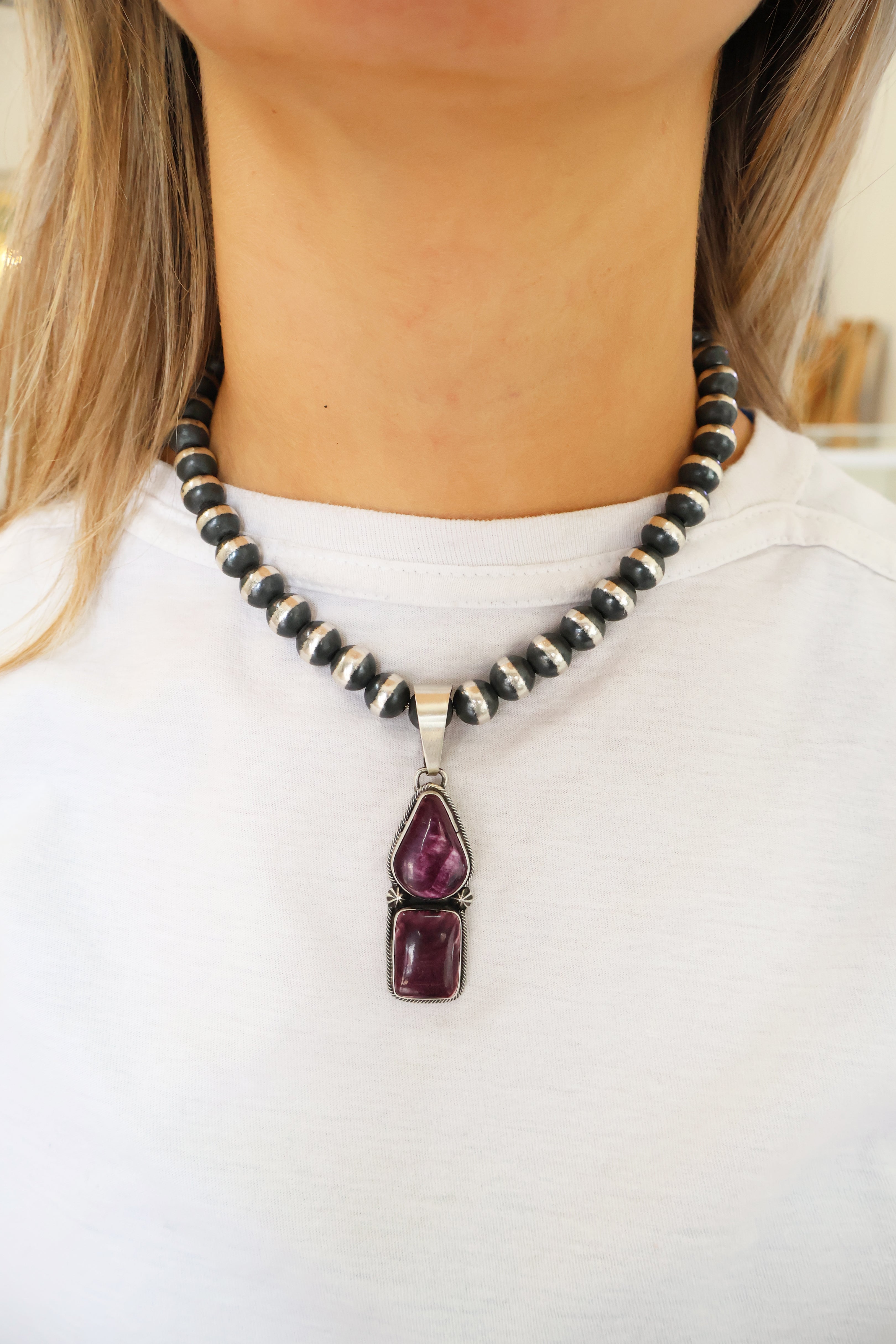 Pictured on 10mm, 16" Navajo Pearls Not Included