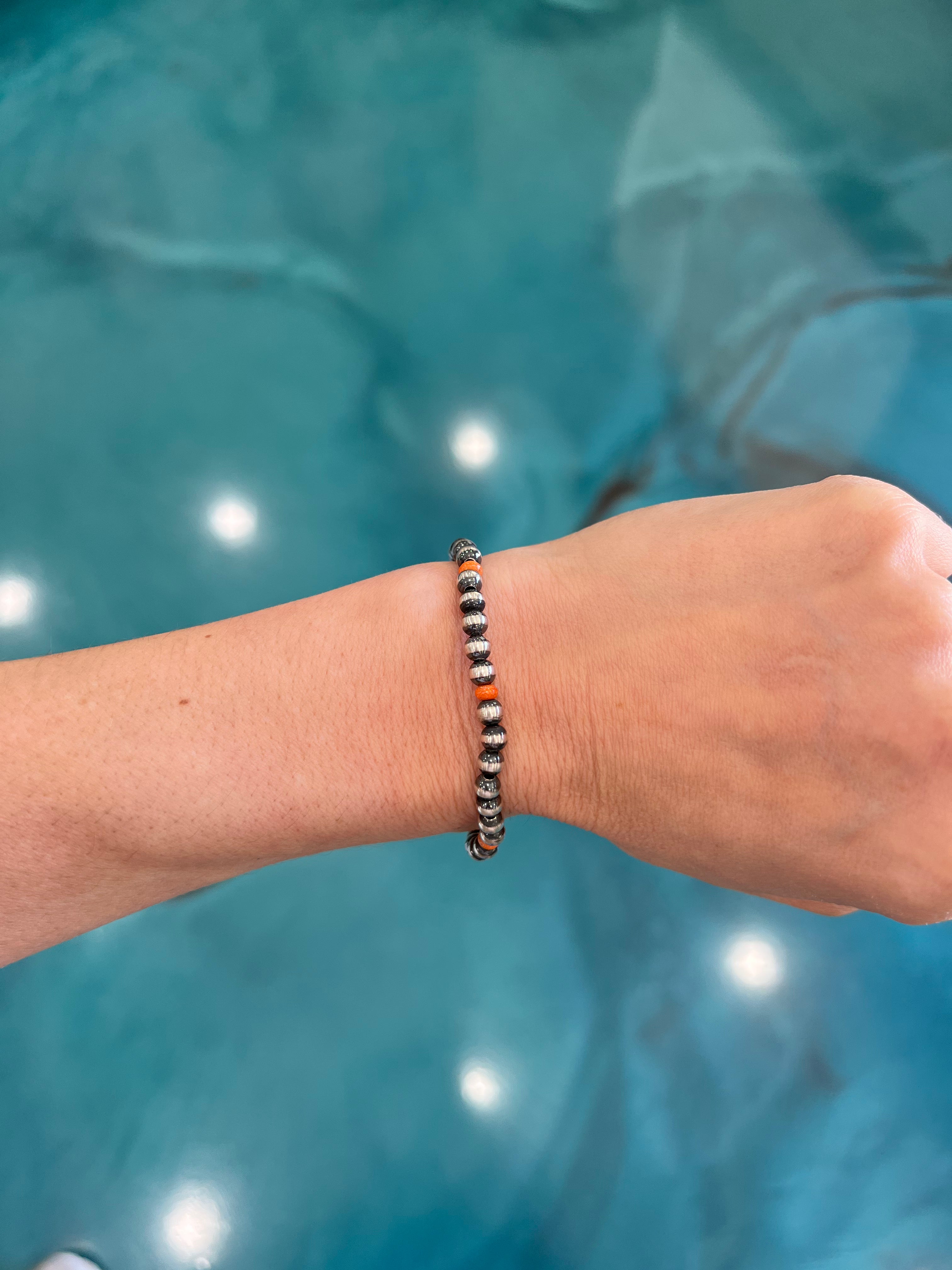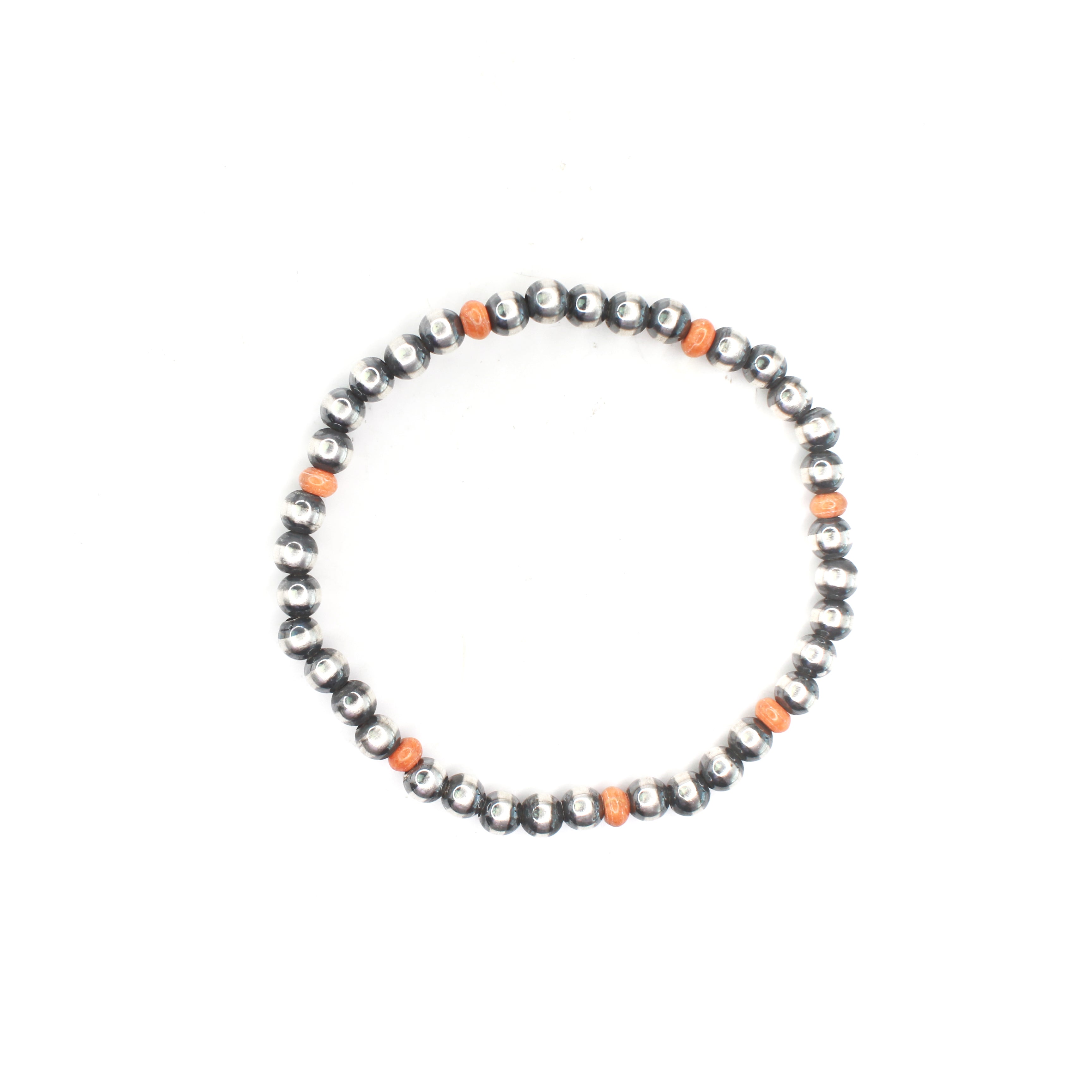 5mm Navajo Pearl Stretch Bracelet - Orange Spiny Oyster