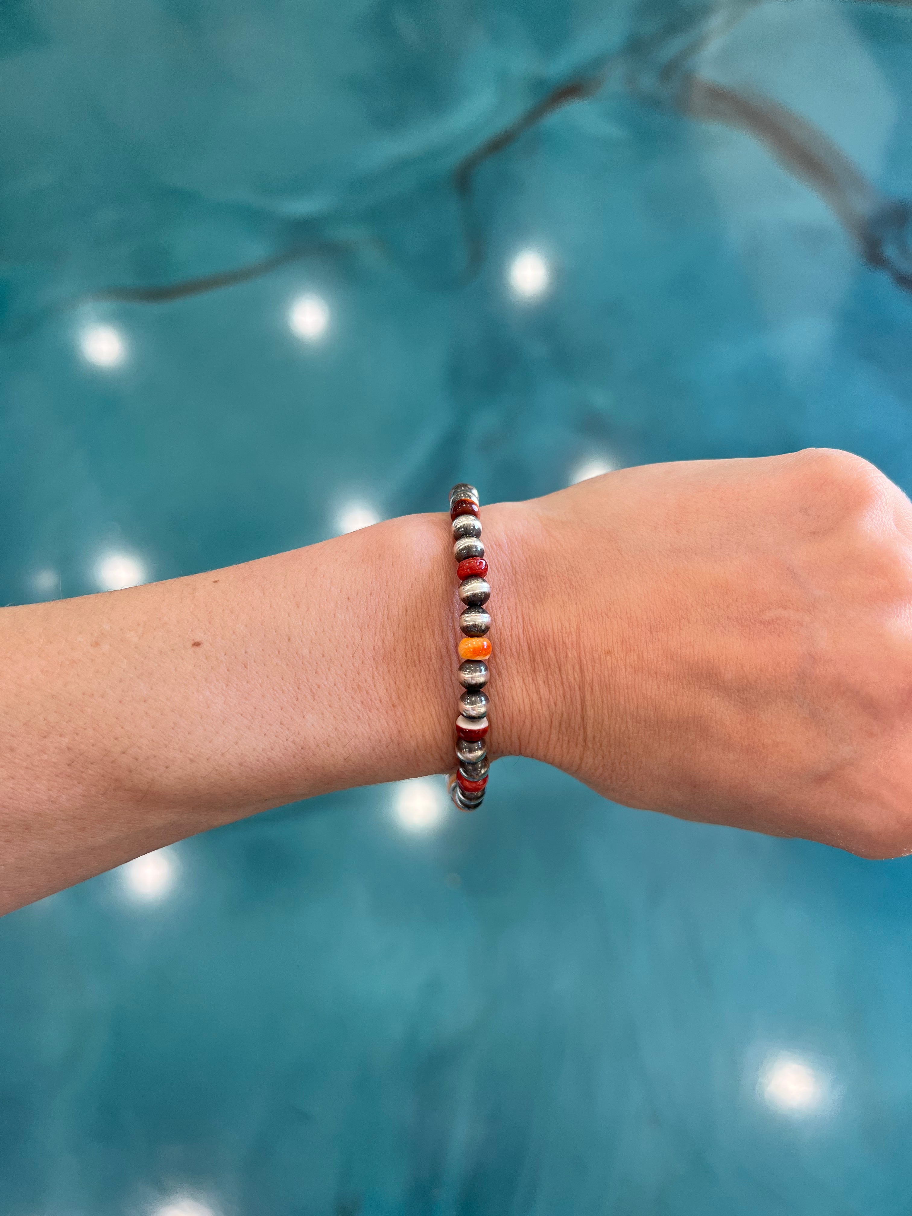 6mm Navajo Pearl Stretch Bracelet - Orange Spiny Oyster (Extended Size)