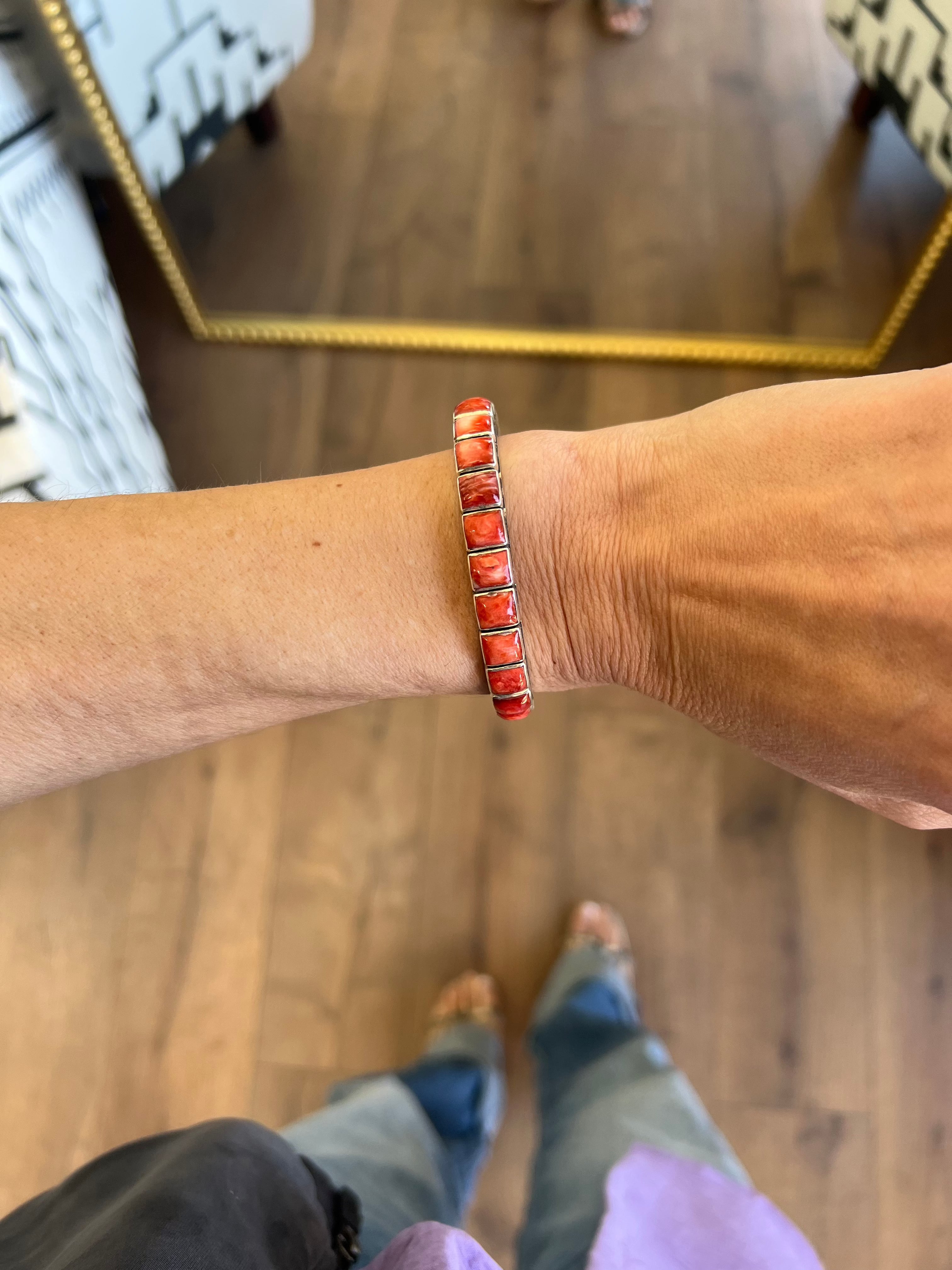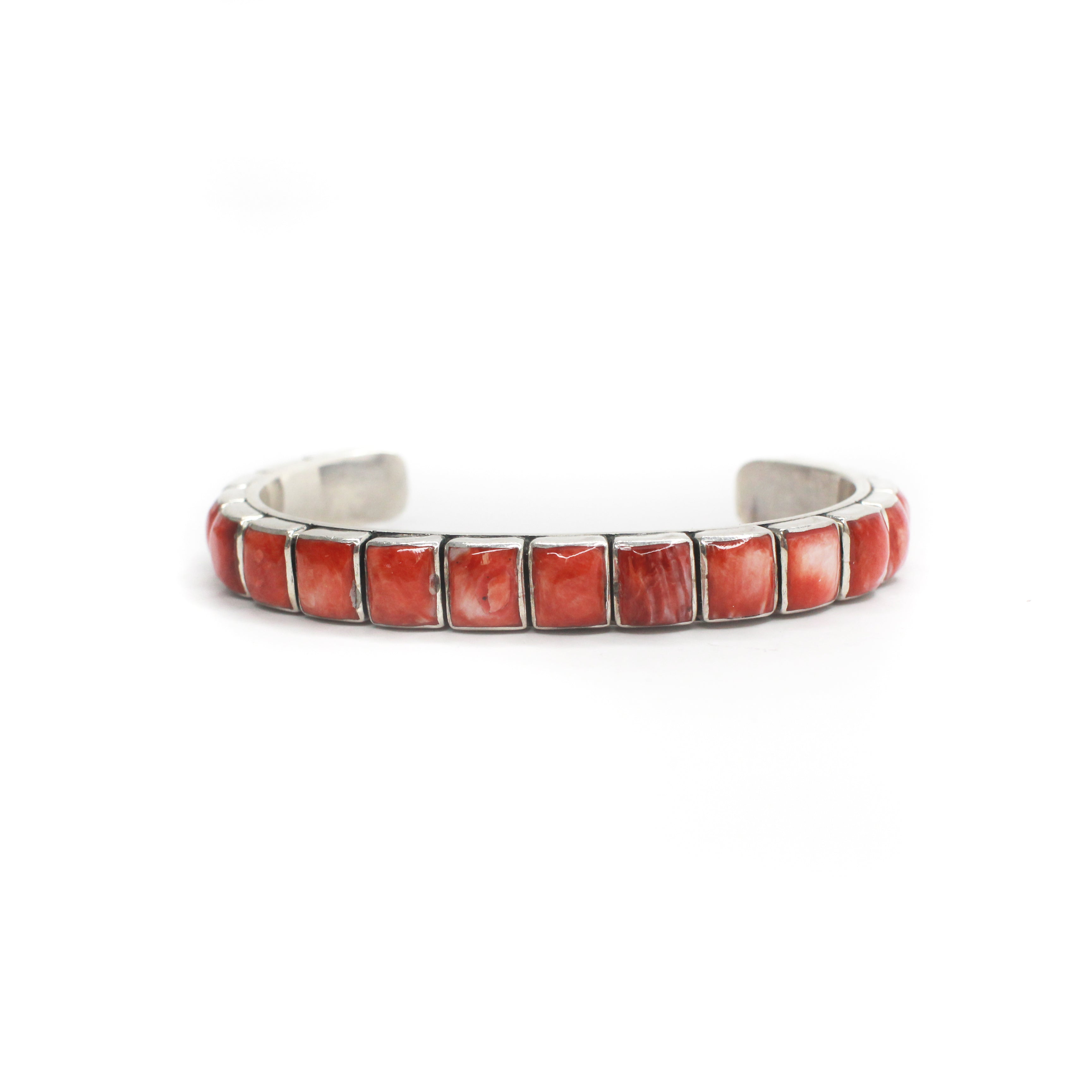 Spiny Oyster is a vibrant shell material commonly found in orange, red, and purple hues, with rare yellow variations. The colors are influenced by the mollusks' diet and the water's depth and temperature. It can be distinguished from coral by the white variations in its shell. Predominantly sourced from the Sea of Cortez (Gulf of California), Spiny Oyster is used extensively in Native American jewelry. Read More