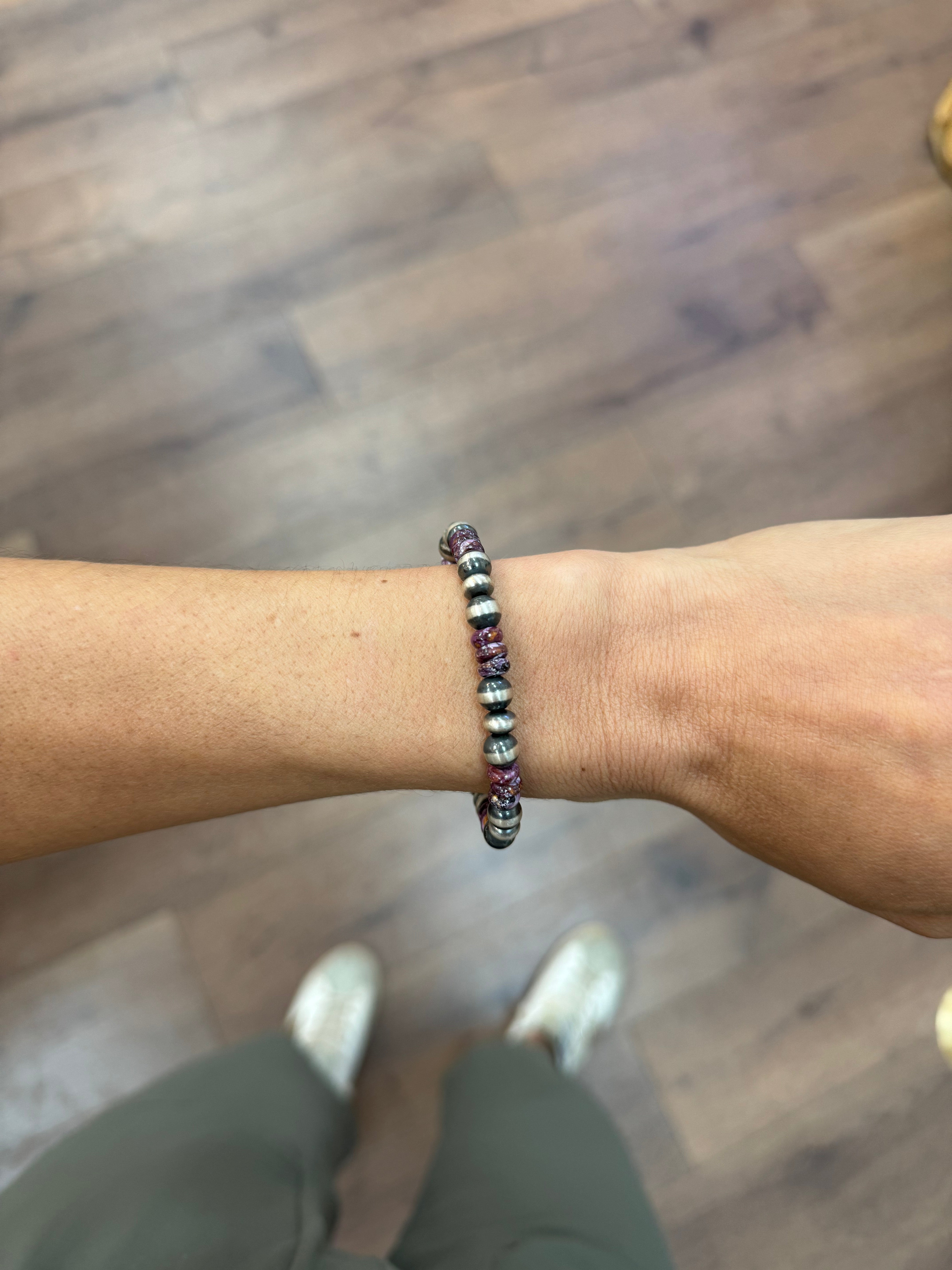 Multi Size Navajo Pearl Stretch Bracelet - Purple Spiny Oyster