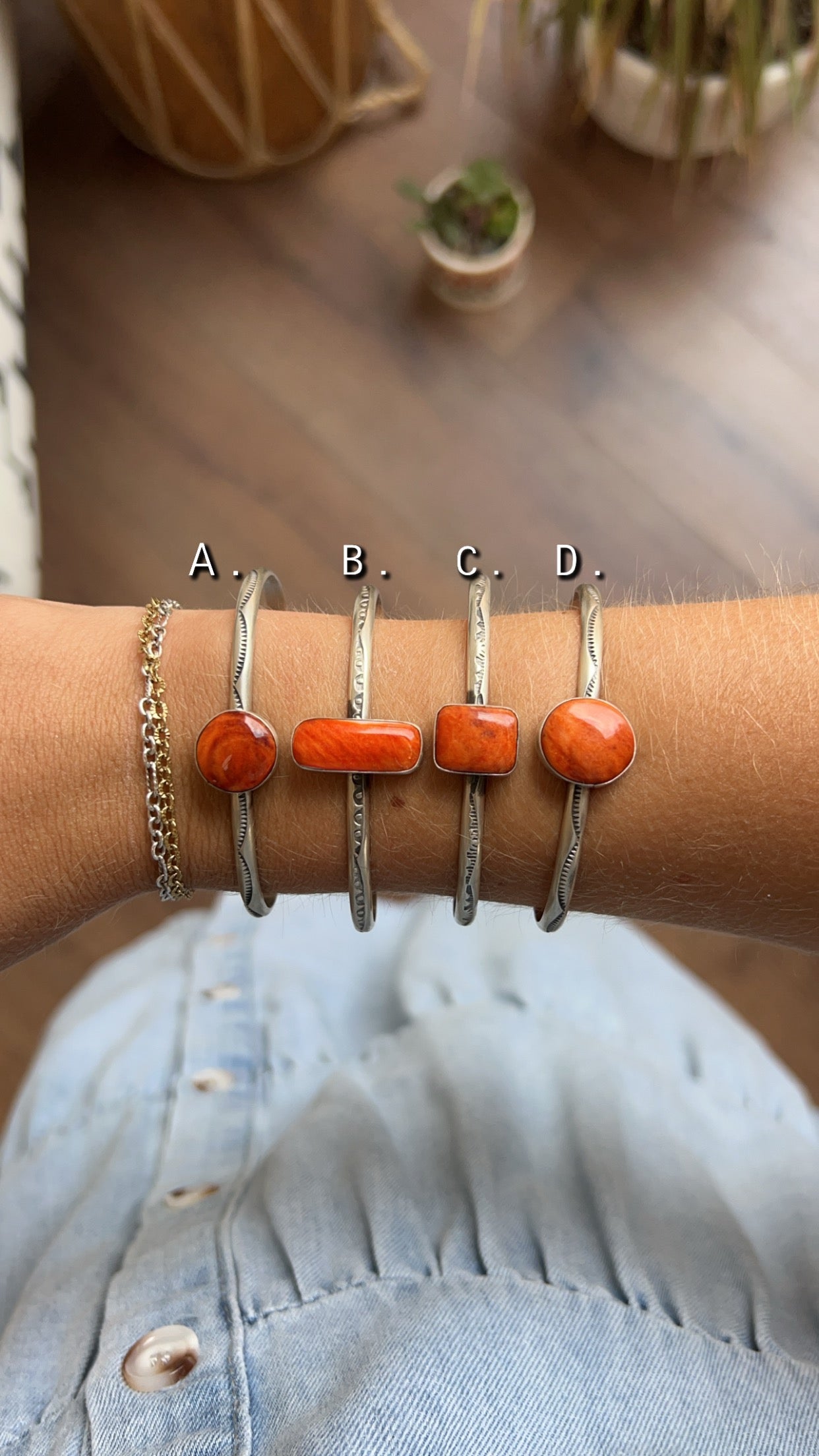 Spiny Oyster is a vibrant shell material commonly found in orange, red, and purple hues, with rare yellow variations. The colors are influenced by the mollusks' diet and the water's depth and temperature. It can be distinguished from coral by the white variations in its shell. Predominantly sourced from the Sea of Cortez (Gulf of California), Spiny Oyster is used extensively in Native American jewelry. Read More