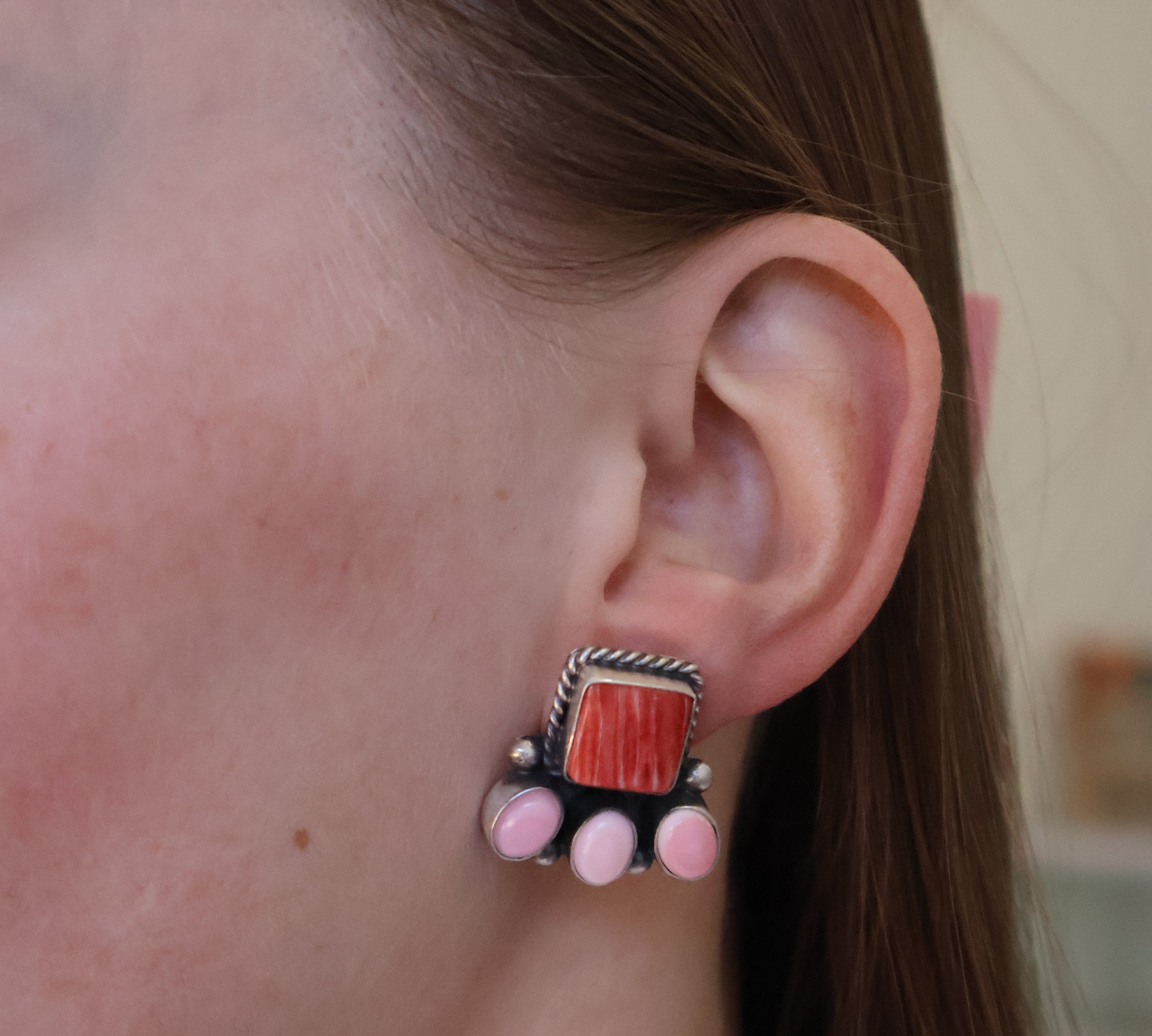 Spiny Oyster most commonly comes in orange, red, and purple. Although very rare it can be found in a yellow hue too. Their colors are based on what the mollusks eat and the depth of water/temperature where they live. One can distinguish the shell from the commonly confused coral by the white variation found throughout. Spiny Oysters are found throughout the world in warm tropical waters. The majority of Spiny Oyster used in Native American jewelry comes from the Sea of Cortez (Gulf of California) on the Baja Peninsula. There are over 70 species of Spiny Oyster found thoughout the world. The two species most commonly used in Native American Jewelry are Spondylus Princeps and Spondylus Calcifer. Spondylus Princeps are primarly coral red and orange. They can be found in 15- 50mm deep waters and they favor sandy areas.Spondylus Calcifer is most commonly used. They are orange and purple in color with red banding along the edges. Their spines are shorter but grows to be thicker and larger than the Princeps species. They favor rocky formations and often attach themselves to the rocks. Spiny Oyster is more closely related to mussels. They are also known as thorny oyster or scientifically bivalve mollusks. Spiny Oyster is still harvested by hand by divers. It is believed that the spines may have evolved to attract other organisms to settle on the shell to conceal it from predators. Spiny Oyster has been used by Native Americans since pre-historic times, unlike red coral which was harvested in the Mediterranean and introduced by Europeans.