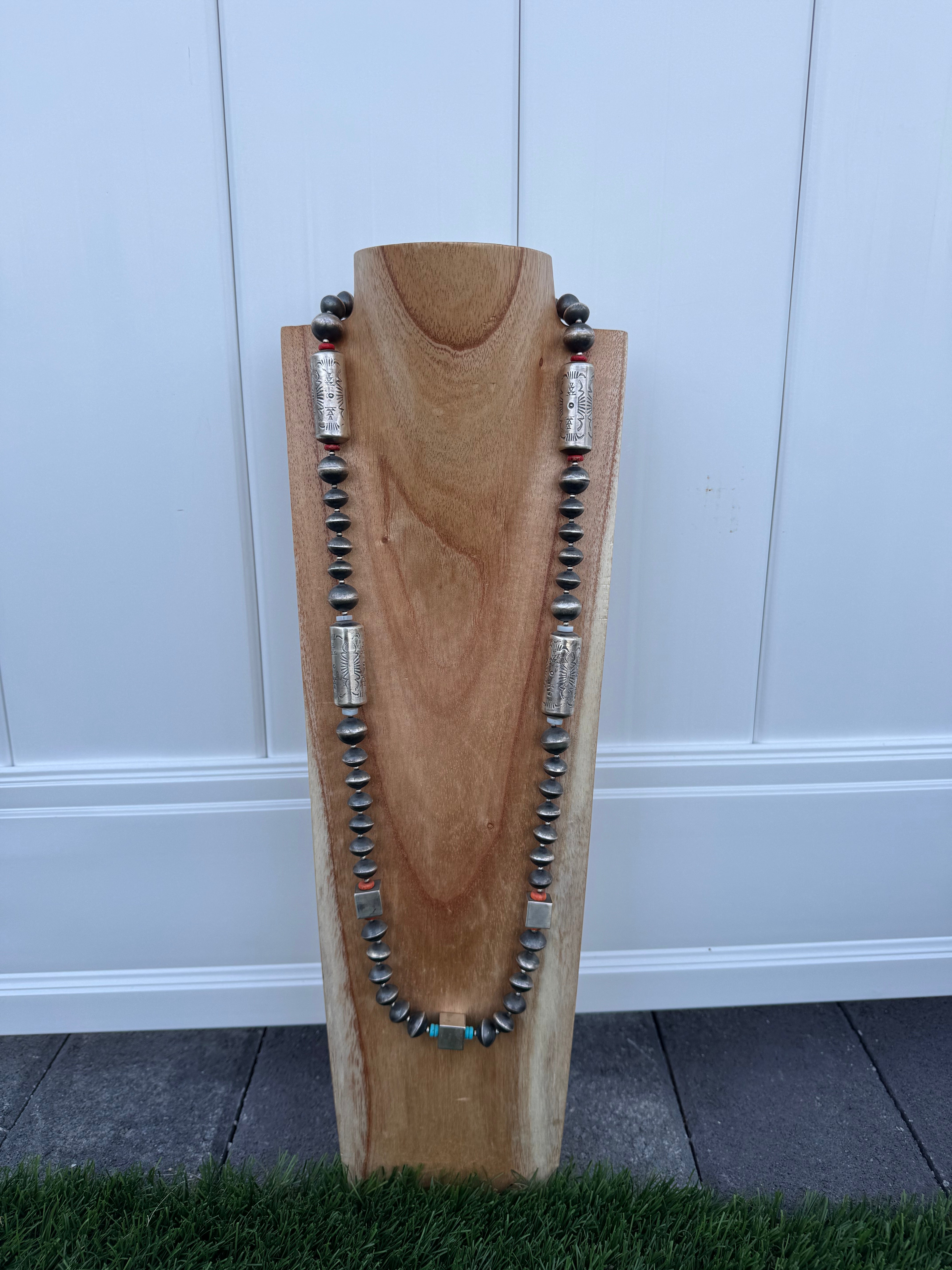 Creating hand-rolled silver beads is a celebrated tradition among Navajo silversmiths and an icon of Navajo jewelry. Handmade beads are meticulously crafted, with each bead being the result of an extremely labor-intensive process. These beads are shaped by hand using tools such as hammers, pliers, and files. The lengthy process includes melting, rolling, cutting, shaping, soldering & filing each sterling silver bead by BY HAND. This meticulous time honored method is a highly skilled trade that few artists have mastered.