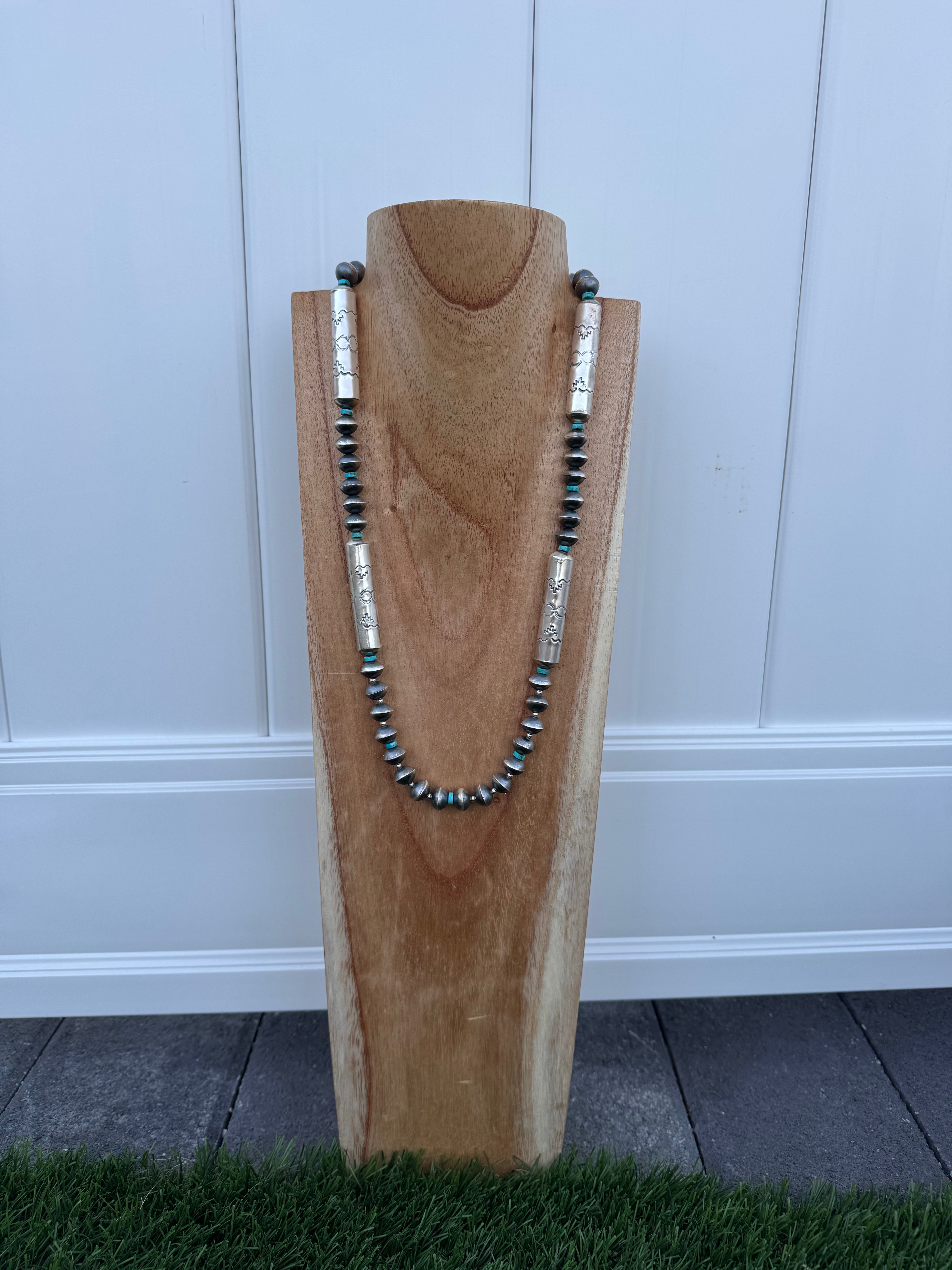 Creating hand-rolled silver beads is a celebrated tradition among Navajo silversmiths and an icon of Navajo jewelry. Handmade beads are meticulously crafted, with each bead being the result of an extremely labor-intensive process. These beads are shaped by hand using tools such as hammers, pliers, and files. The lengthy process includes melting, rolling, cutting, shaping, soldering & filing each sterling silver bead by BY HAND. This meticulous time honored method is a highly skilled trade that few artists have mastered.