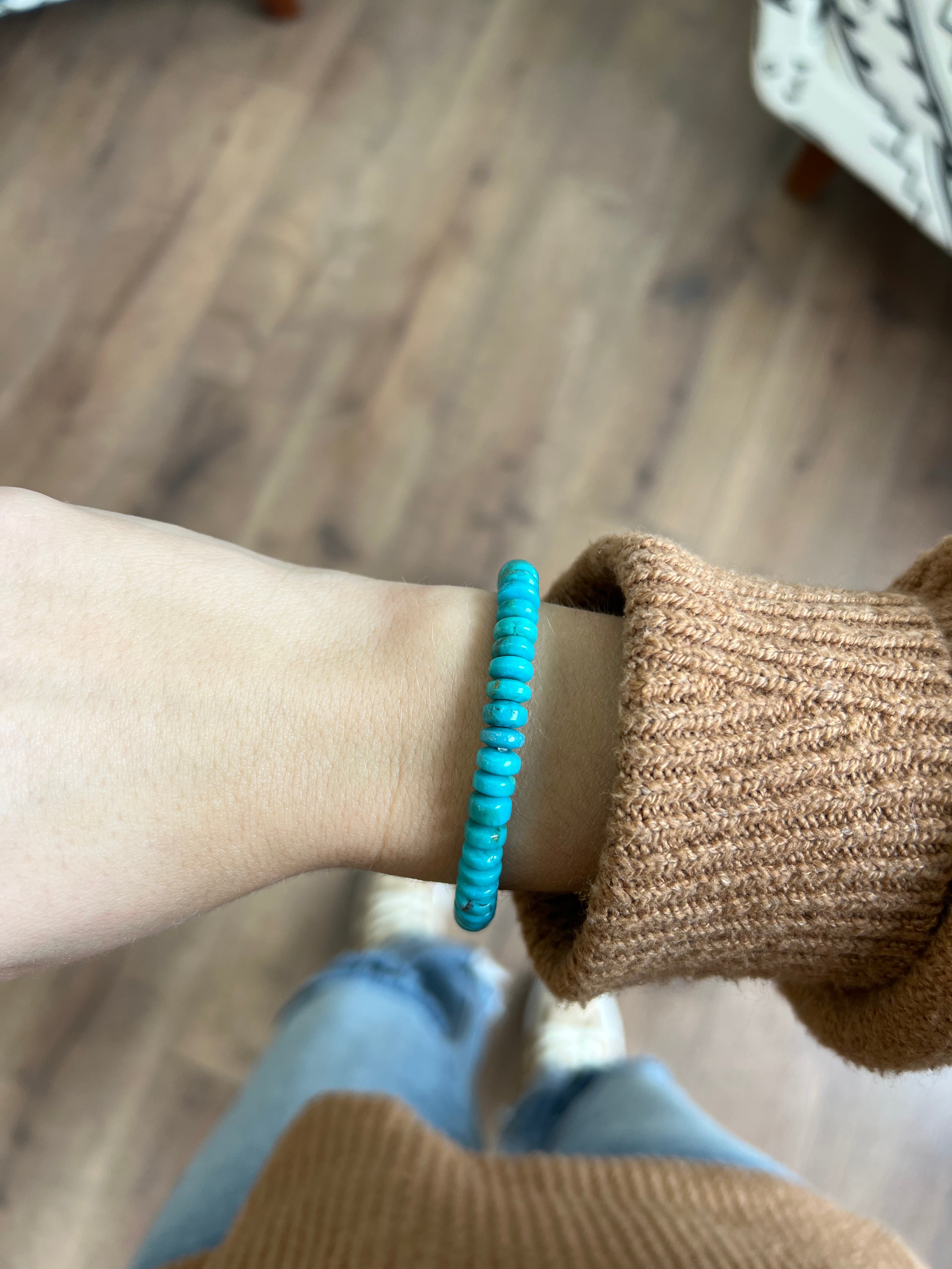 Since the bracelet is made from stretchy material, it will expand to fit your wrist when worn. However, the listed inside circumference is not for the bracelet in its fully stretched state—it’s the relaxed measurement. Stretch bracelets are designed to stretch, but they should not be worn stretched out at all times.