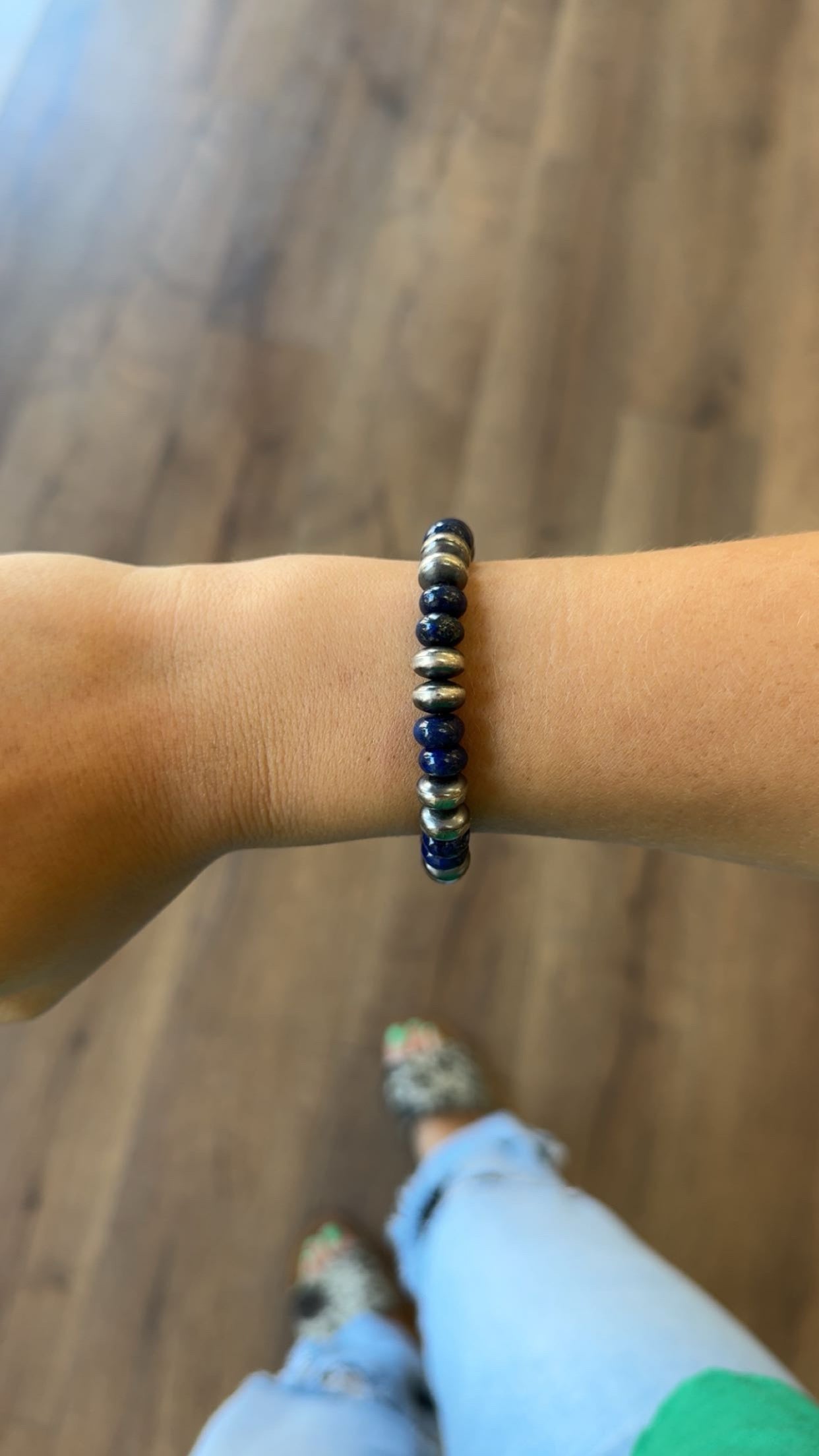 Since the bracelet is made from stretchy material, it will expand to fit your wrist when worn. However, the listed inside circumference is not for the bracelet in its fully stretched state—it’s the relaxed measurement. Stretch bracelets are designed to stretch, but they should not be worn stretched out at all times.