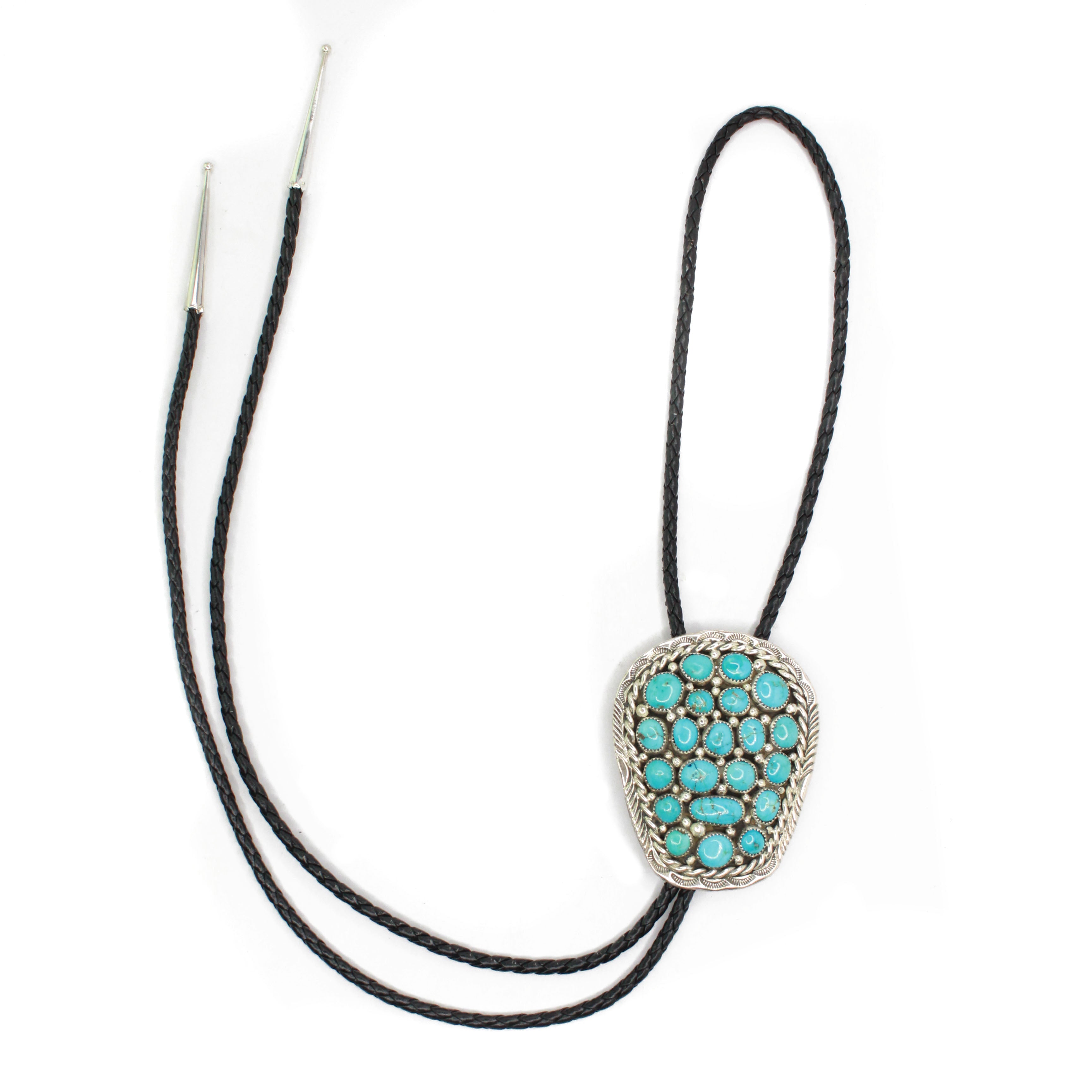 Length end to End Measurements listed for bolos is the entire length of leather cord including any silver tips/embellishments. The 'Cluster Size' or 'The Concho Size' listed is the total height and width of piece that slides.