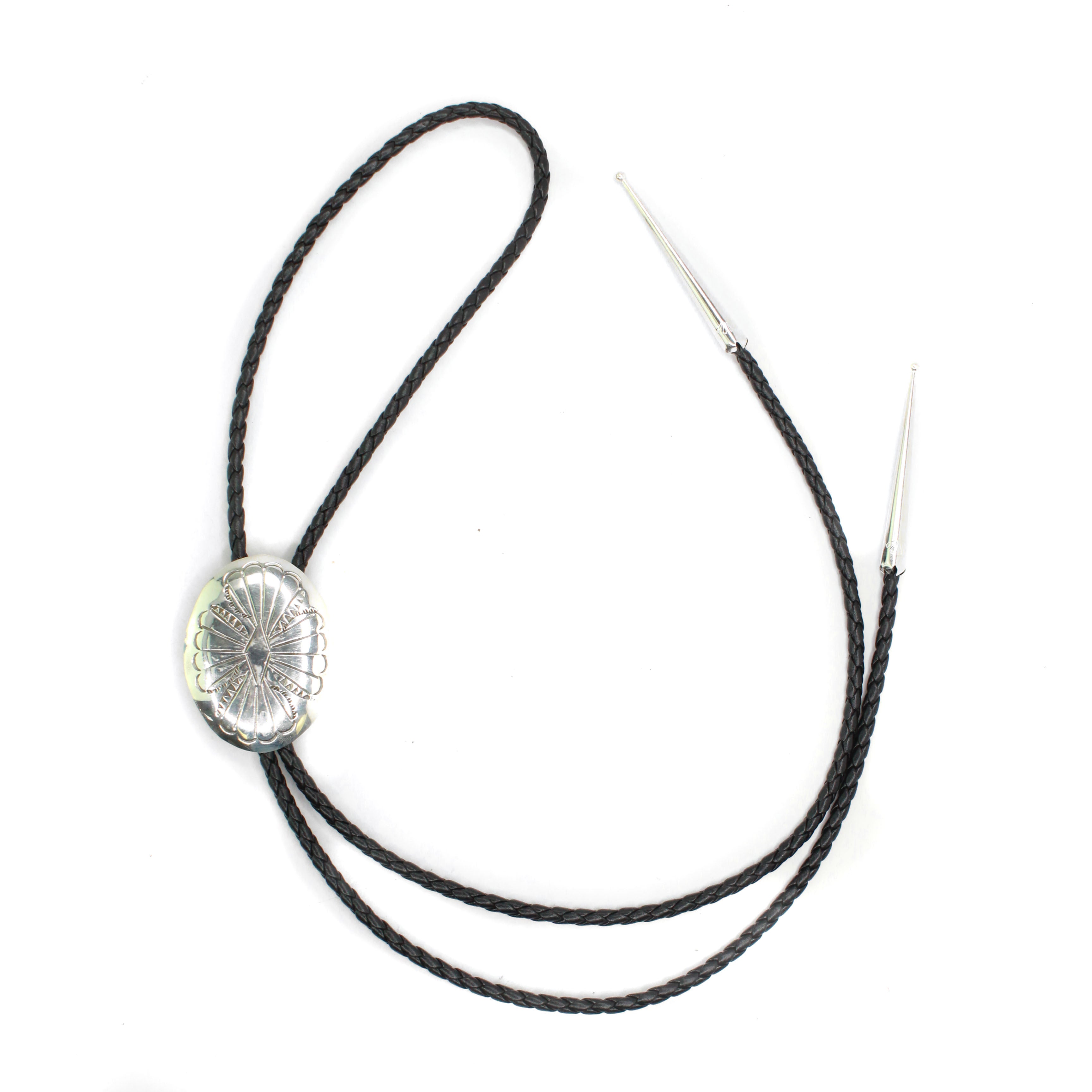 Length end to End Measurements listed for bolos is the entire length of leather cord including any silver tips/embellishments. The 'Cluster Size' or 'The Concho Size' listed is the total height and width of piece that slides.