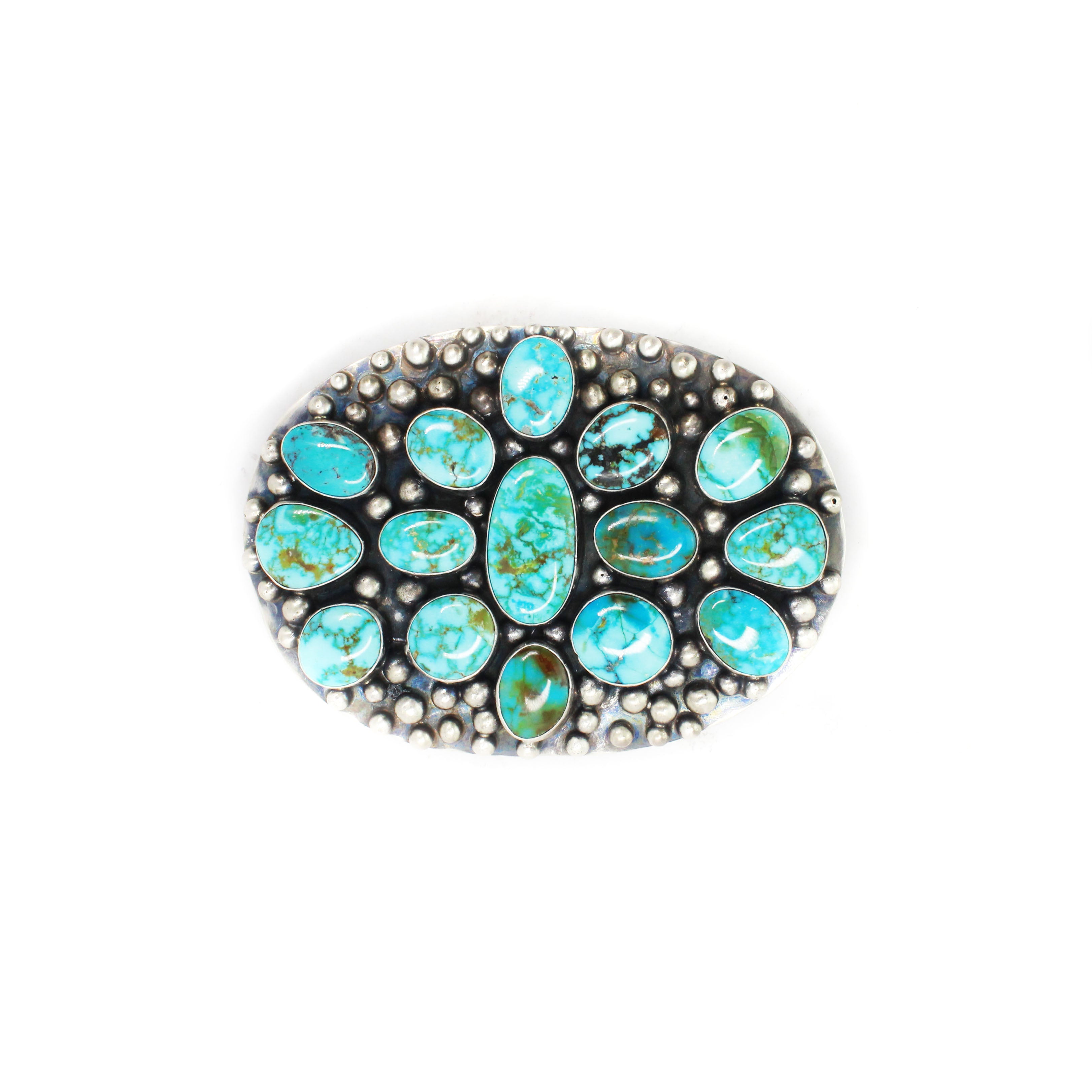 Kathleen Livingston Chavez was born on December 17, 1958, in Church Rock, New Mexico, where she still resides with her husband, Lorenzo Juan. She began her silversmithing journey in 1974, initially creating earrings, rings, and bracelets. By 1994, Kathleen expanded her artistry to include unique, high-end jewelry designs. She expresses great enjoyment in this evolution of her craft, stating, “It is more fun to make because of the amount of thought and imagination you have to put into it.” Today, she operates out of Gallup, New Mexico, continuing to innovate and inspire through her jewelry.