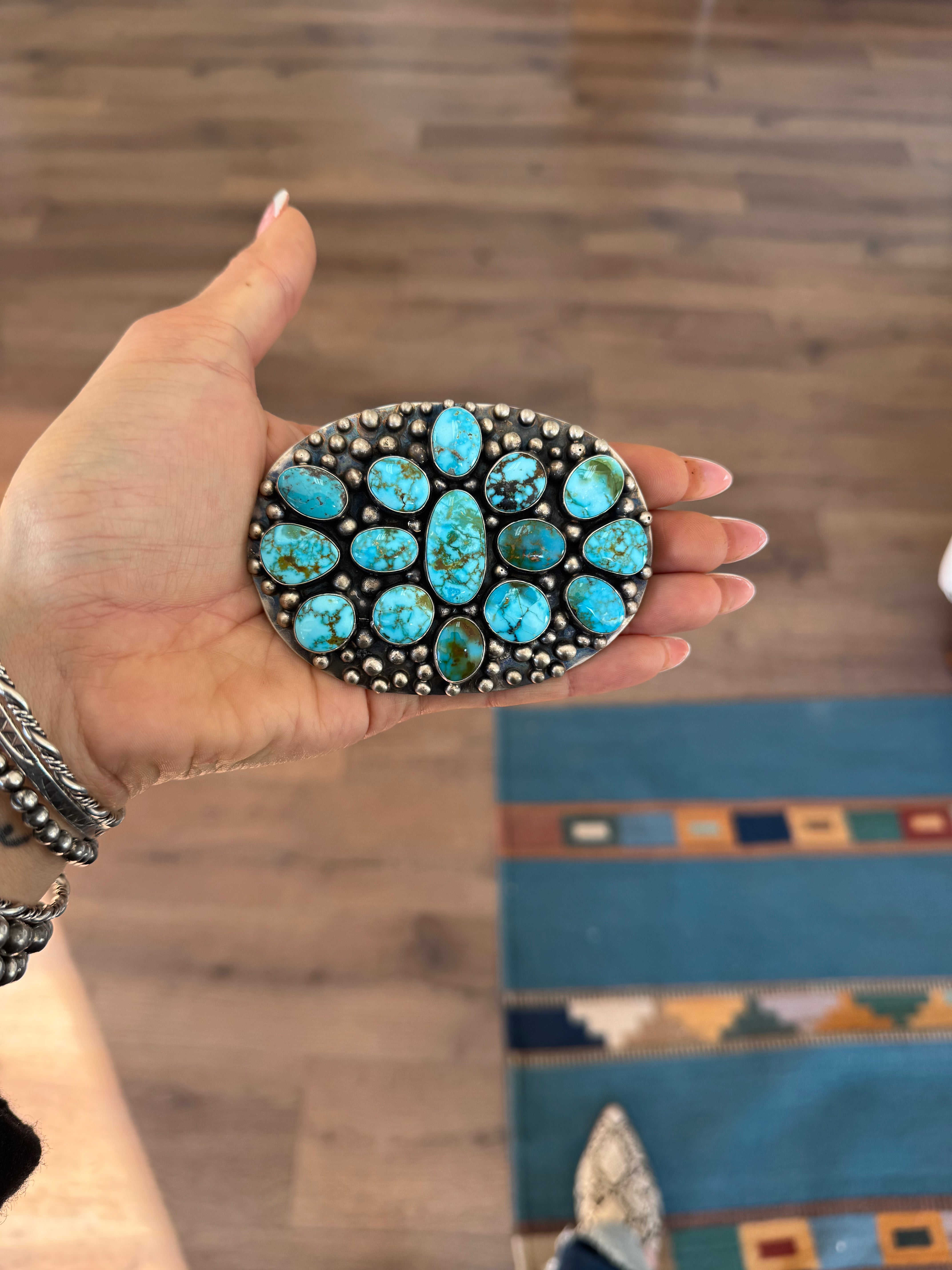 The Kingman Mine, located near Kingman, Arizona, is an active turquoise mine that has been in production since the 1880s, following its discovery by S.A. Colbaugh in the Aztec Mountains. The Colbaugh family continues to mine, process, sort, and distribute Kingman Turquoise. Most Kingman Turquoise is porous and requires processing for jewelry, with only about 3% of the stones being naturally hard enough for direct use. The mine is renowned for its blue matrix turquoise. Read More
