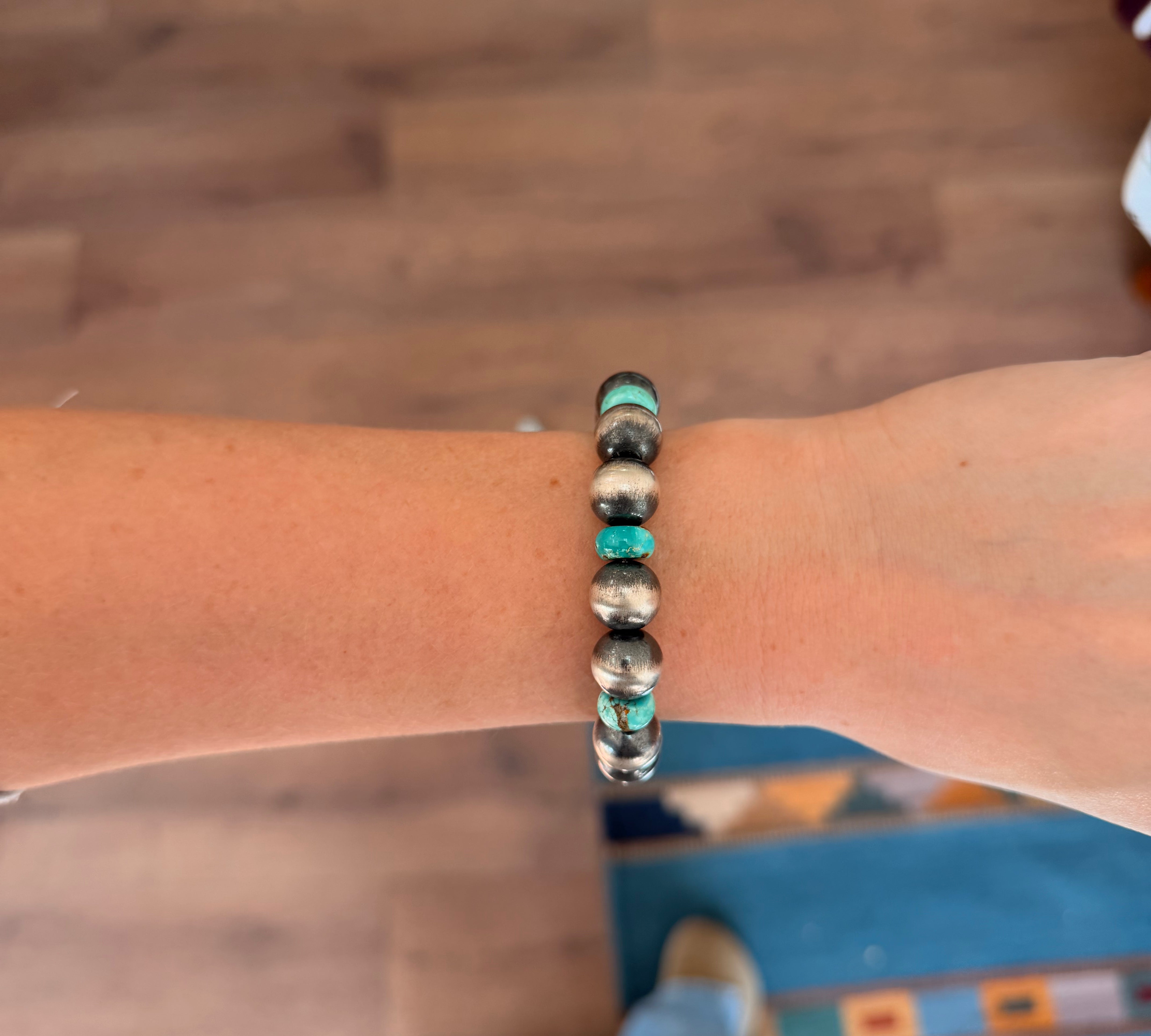 4mm Navajo Pearl Stretch Bracelet- Turquoise Slab